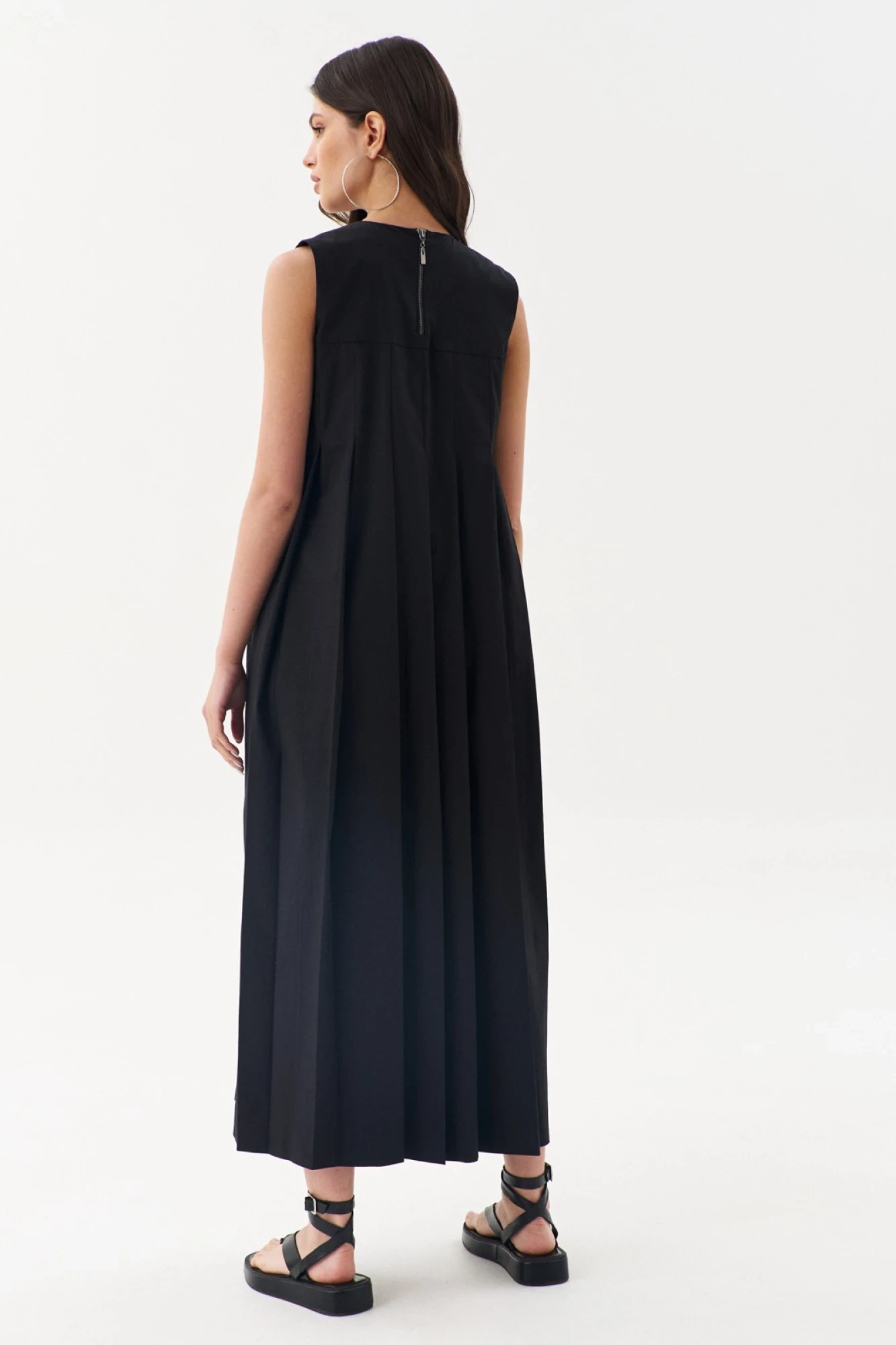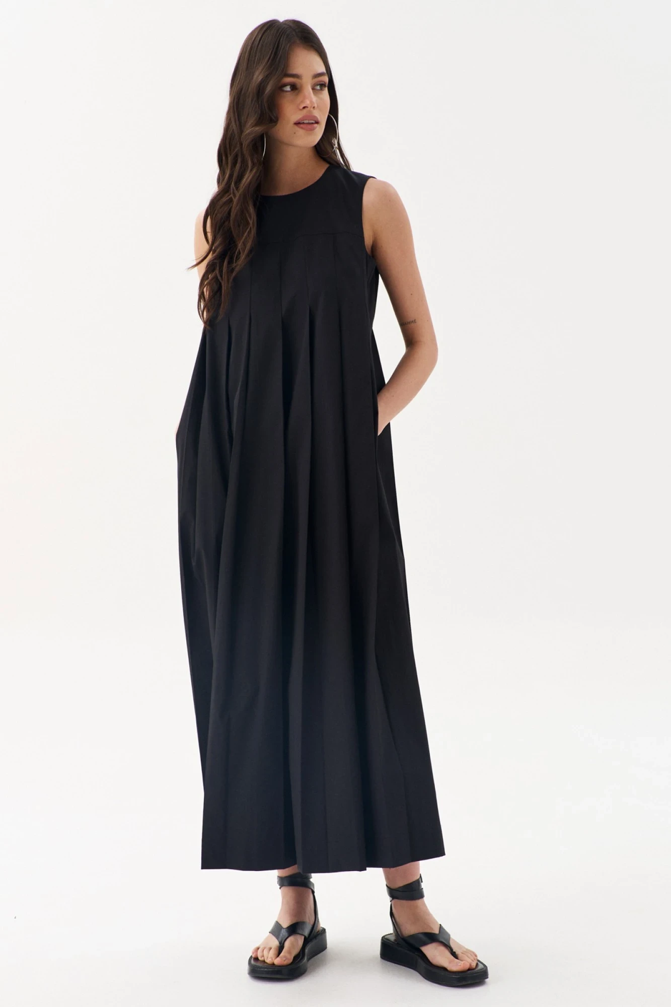 •по переду и спинке притачные кокетки и декоративные складки •по спинке застежка на молнию •в боковых швах карманы •длина макси"