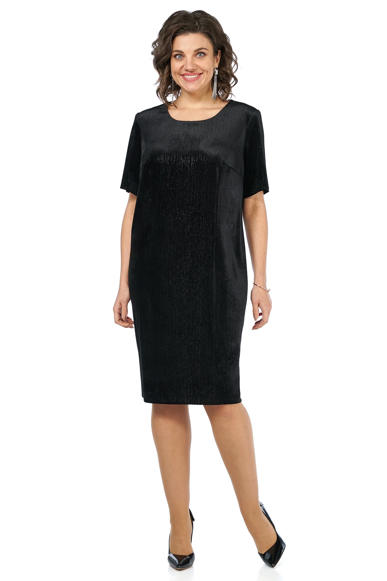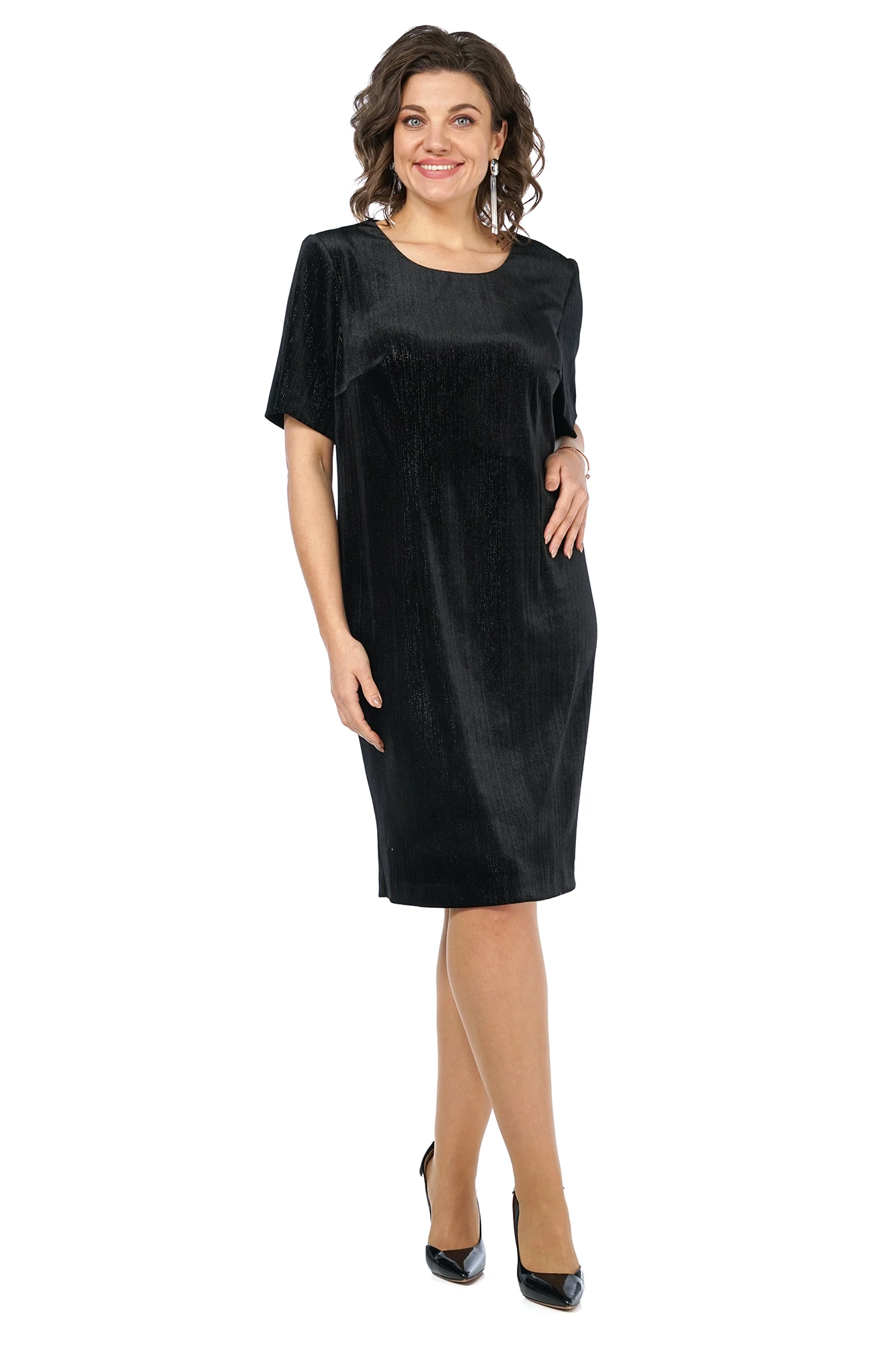 Платье полуприлегающего силуэта, с застёжкой на потайную молнию в среднем шве спинки. Перед с нагрудными и талевыми выточками. Спинка с талевыми выточками, понизу щлица. Рукава втачные, одношовные, короткие.