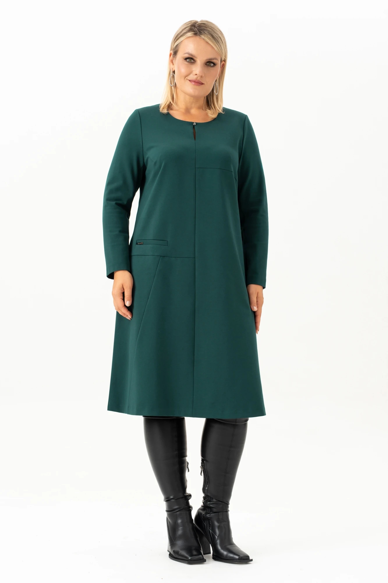 Удобное, стильное, красивое платье из трикотажного полотна прямого силуэта,слегка расширенного к низу. Платье отлично сядет на любую фигуру. Полочка асимметричного кроя. С одной стороны обработан карман-имитация с втачной листочкой, с другой - карман в боковом шве. Капелька по среднему шву полочки. На спинке, в среднем шве, обработана застежка (потайная молния). Рукав длинный. Простое в уходе, универсальное, базовое платье больших размеров неоднократно порадует вас! Платье легко комбинировать с другими предметами гардероба, добавляя акценты и создавая стильные многослойные образы. Модель очень хорошо стройнит и скрывает неровности фигуры. Красота в простоте, так можно сказать, про это платье, в котором Вы будете себя уверенно чувствовать в любой ситуации, можно носить и в офис, и на прогулку, и в ресторан.