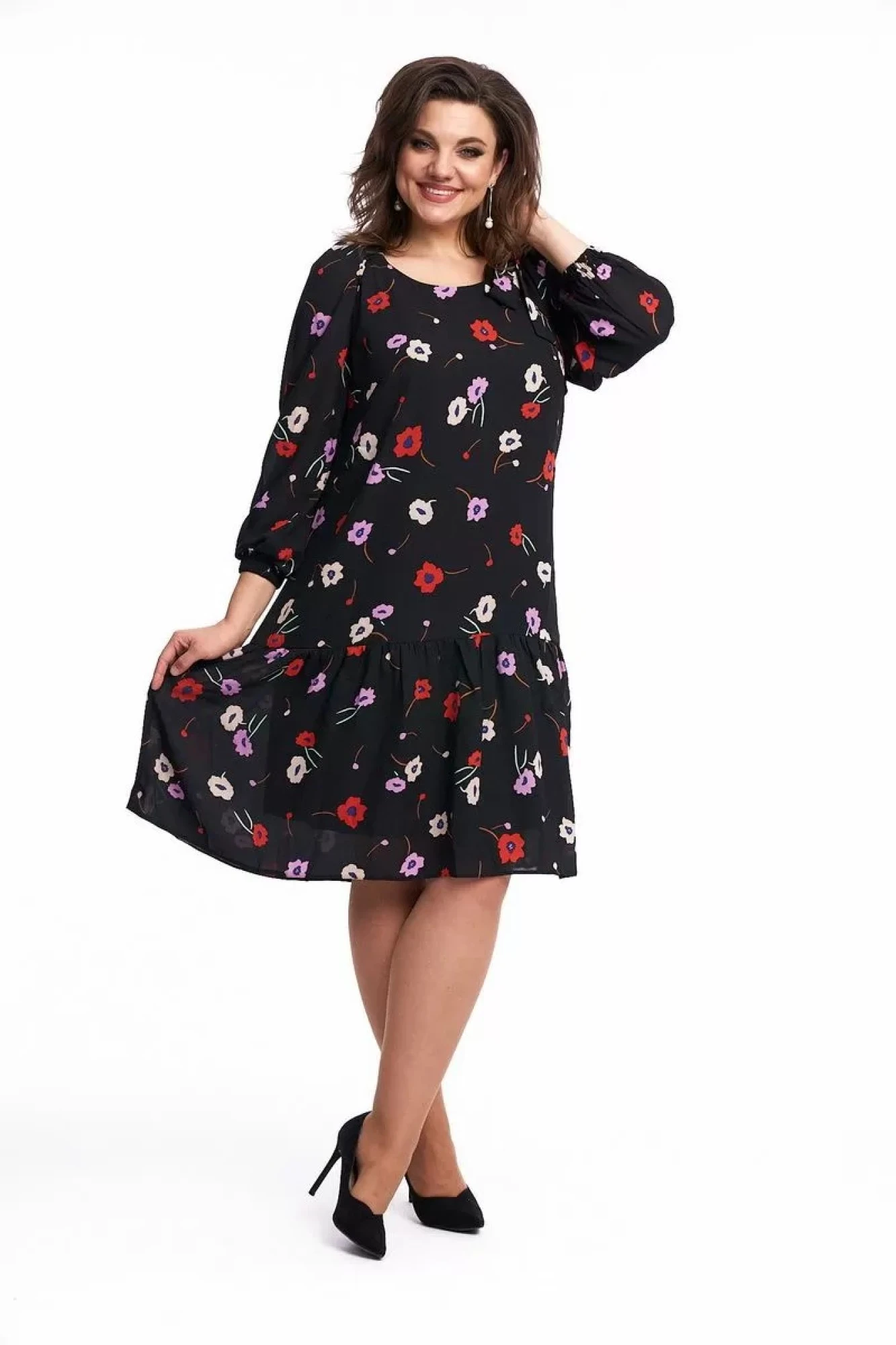 Платье женское, А – силуэта, выполнено из шифоновой ткани на трикотажной подкладке. Вырез горловины овальный. По переду расположены нагрудные вытачки. По переду и спинке имеется собранный на сборку волан низа. Рукав реглан, широкий, собран на резинку вверху и внизу. В качестве декора рукава служит лента из основной ткани, завязанная на бант. Платье может быть нарядным, а также использоваться для работы в офисе и школах, удобное, силуэт скрывает недостатки и подчёркивает достоинства фигуры, не сковывает движение.