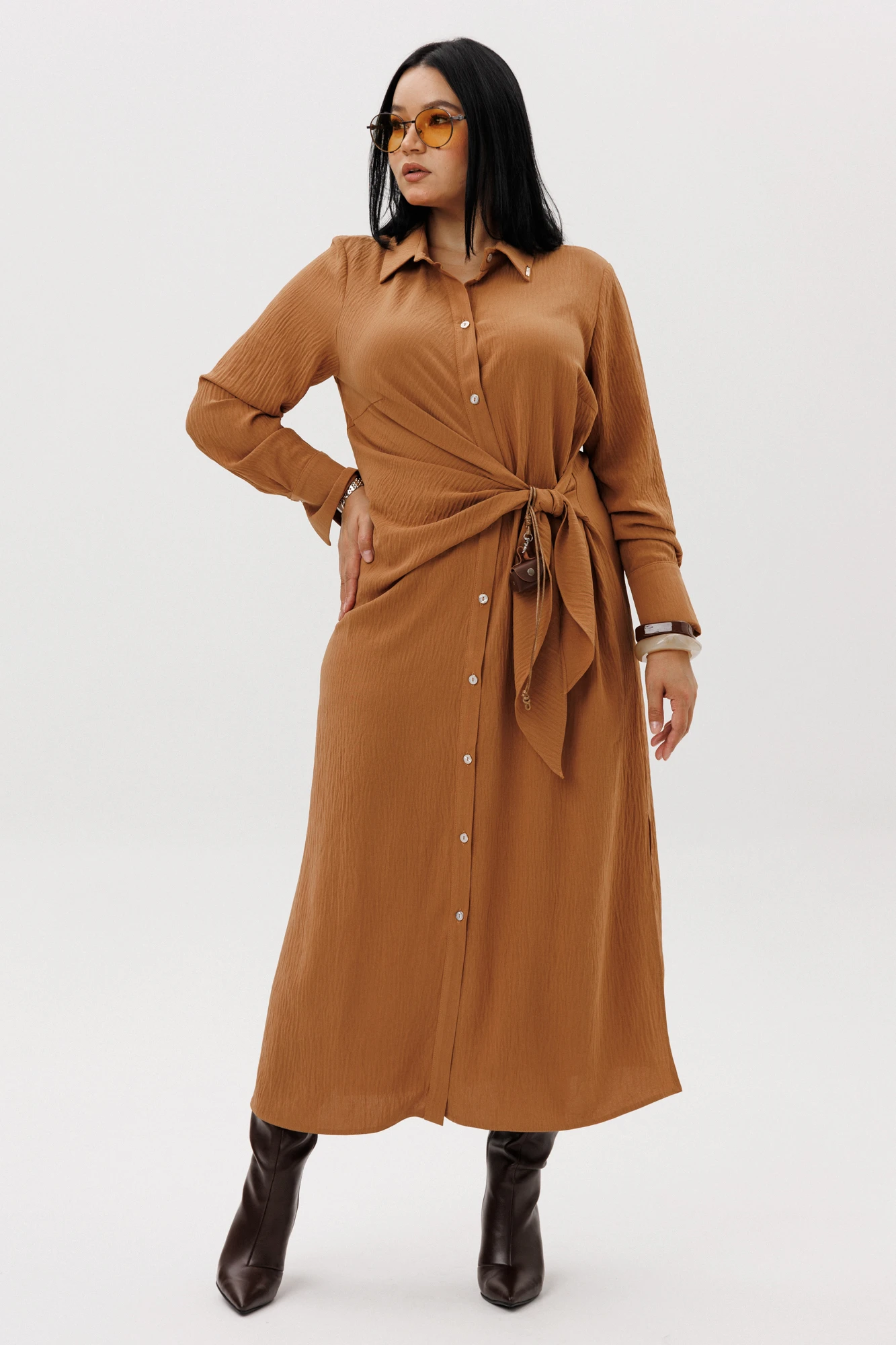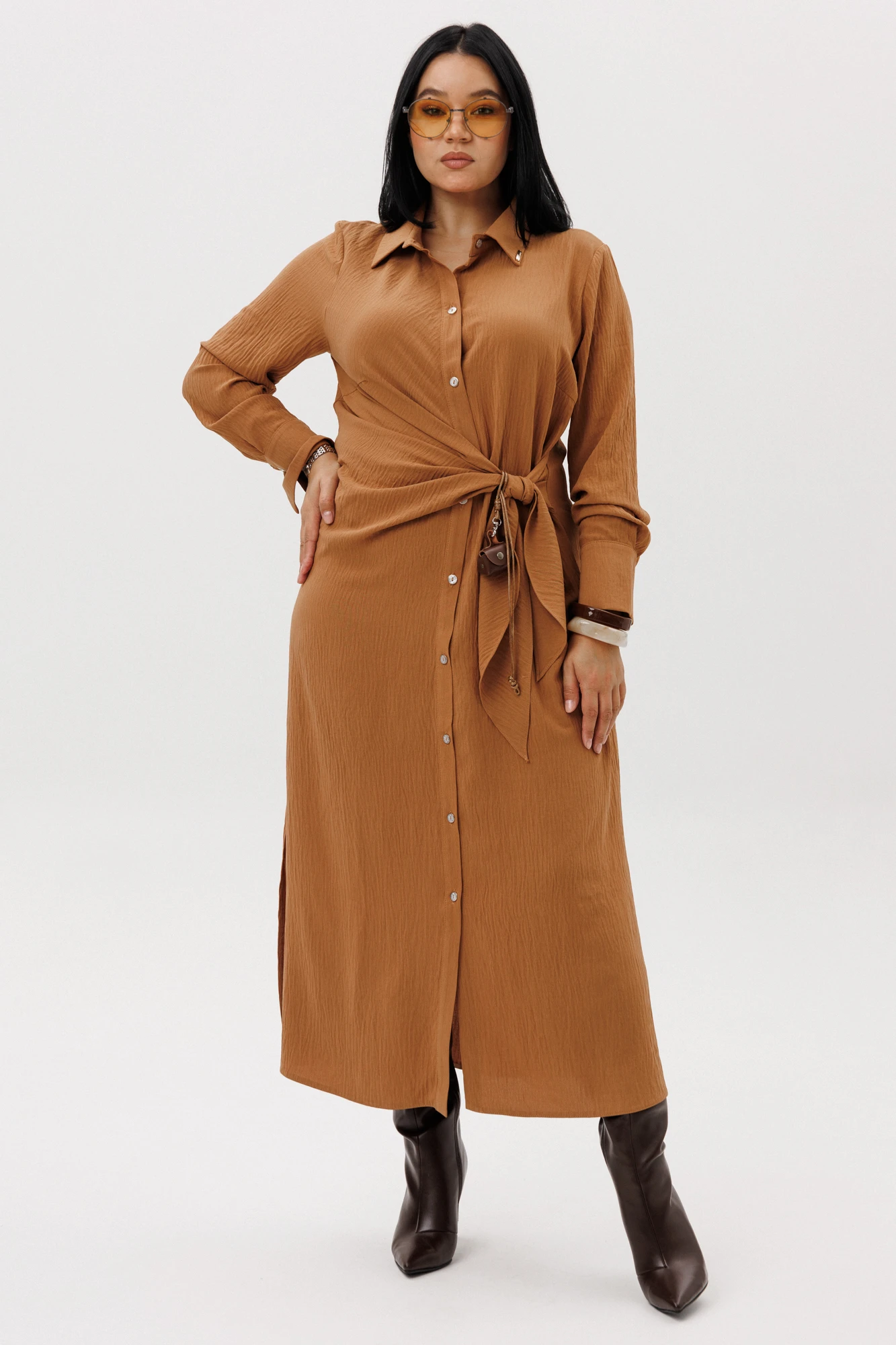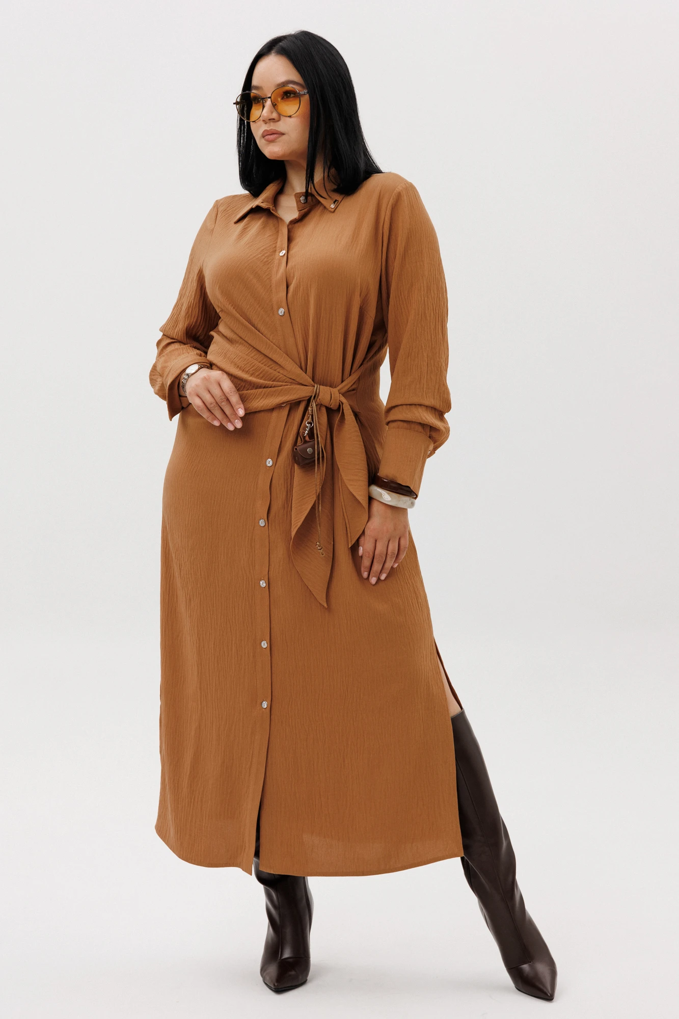 Платье рубашка от бренда «Анастасия» - создано для тех, кто ценит комфорт и элегантность. Изготовленное из турецкой ткани, оно обеспечивает мягкость и легкость при носке. Платье оригинального кроя. Полочка ассиметричная: с одной стороны идет драпировка, переходящая в пояс, со второй стороны: пояс-завязка из бокового шва. Застежка -планка на петли и пуговицы. Платье миди дополнено отложным воротником и длинными рукавами на манжете. Платье с пуговицами спереди подходит практически всем. Нарядное платье идеально для повседневной носки и стиля casual кэжуал. Повседневное платье рубашка - необычный вариант на каждый день, для прогулок, встреч в кафе и даже для работы, если позволяет дресс-код. Наряд надевают не только на повседневку, но и на фотосессию, на праздничные мероприятия – день рождения, новый год, новогодняя вечеринка. Модное платье с длинными рукавами можно комбинировать с разной обувью и одеждой для создания молодежных образов. Стильное платье идеально подойдет для повседневных выходов, особенно когда нужно добавить шарма и изящности в ваш образ. Оно также станет отличным выбором для особых случаев, таких как свадьба подруги, новогодний вечер или другие праздничные мероприятия. Универсальная длина миди и классический фасон рубашки делают его отличным выбором как для повседневного, так и для делового образа. Идеальное сочетание стиля и удобства для тех, кто ценит изысканность в каждой детали. Нам важно ваше мнение отзывы. Длина по спинке (48-52)-125см, (54-58)-126см. Длина рукова с манжетой: (48-58)-63см.