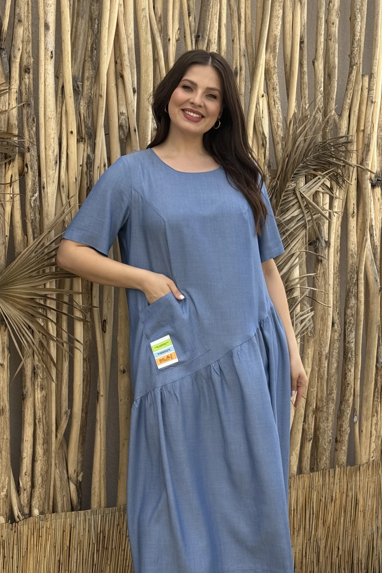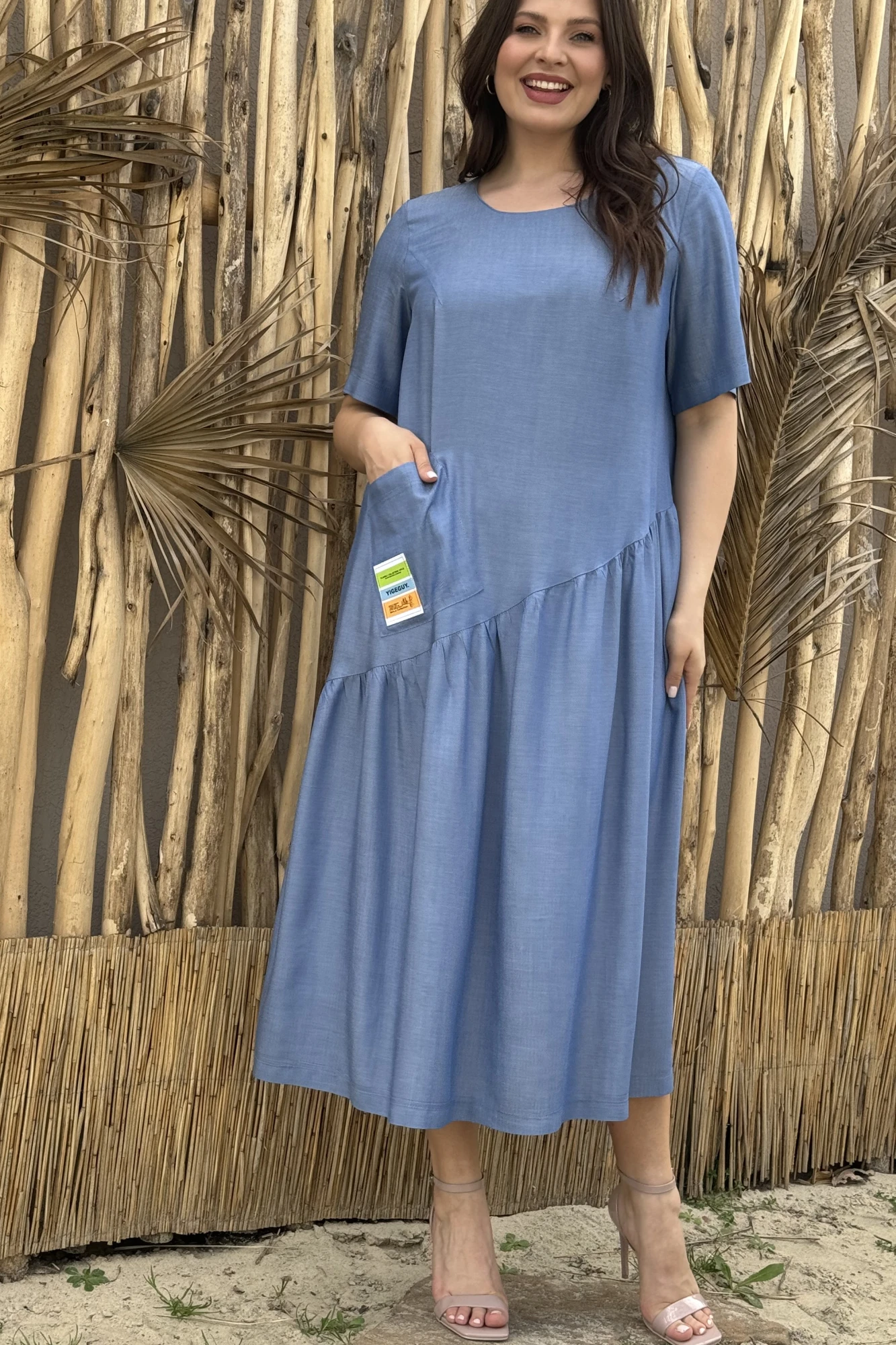 Свободное легкое женское платье из текстильной ткани. Идеальный вариант в жаркую погоду для офиса, прогулки или праздничного выхода. Достаточно обыграть его подходящими аксессуарами и обувью. Платье прямого силуэта , с отрезным косым валаном,со сборкой. Обьем по груди создается за счет выточек из проймы. Платье подойдет на любую фигуру, сроет все недостатки. По переду идет накладной карман с нашивкой ВНИМВНИЕ! Нашивка может отличаться от фото.