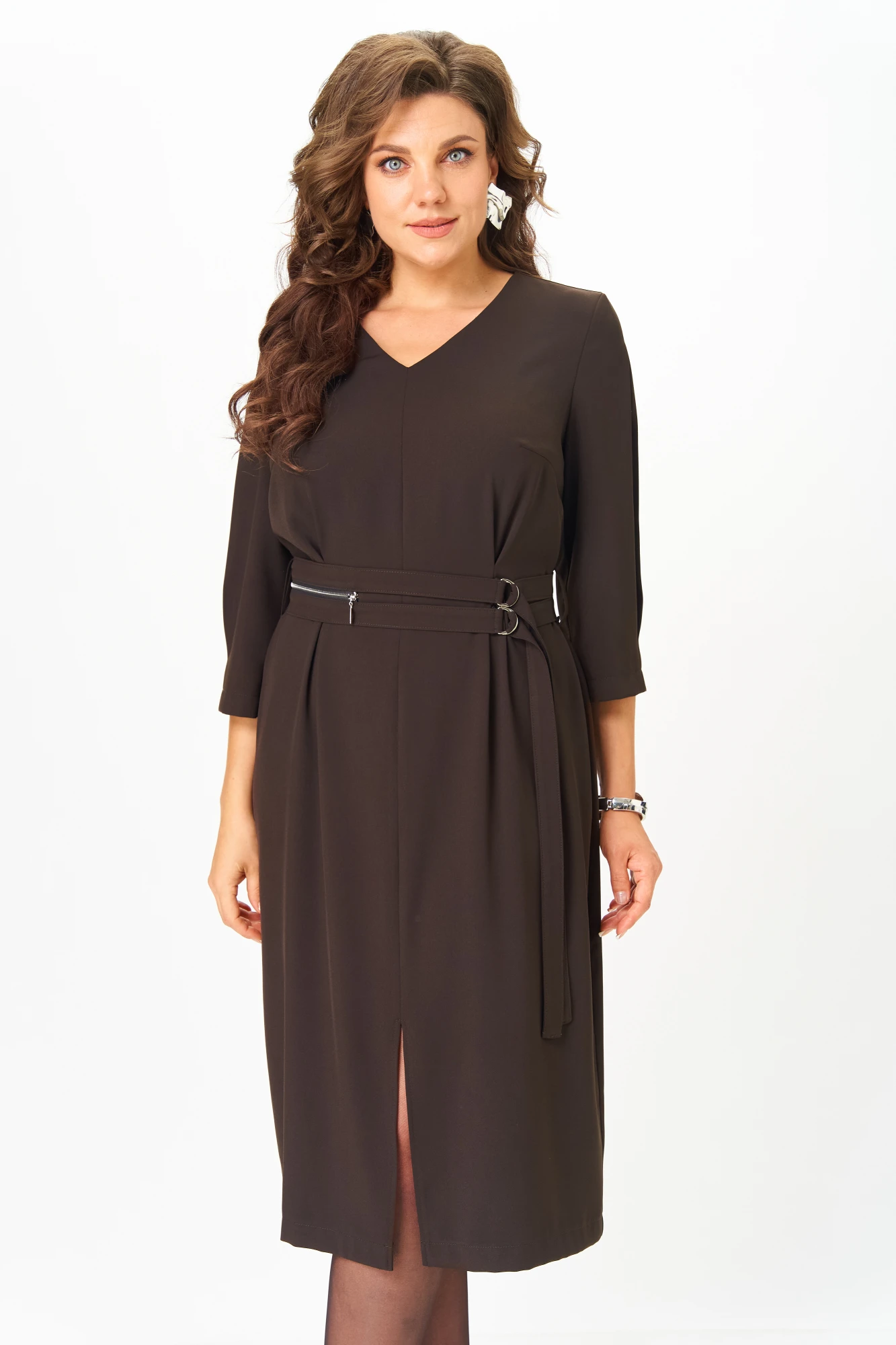 Элегантное и стильное платье от бренда Anastasia Mak идеальный выбор для современной женщины, которая ценит комфорт и стиль. Платье прекрасно подойдет на каждый день, в офис, для праздника или вечеринки. Платье прямого силуэта, длиной за колено, выполнено из однотонной ткани. Полочка платья с центральным швом и нагрудными вытачками, В области талии обработаны складки-защипы, в нижней части среднего шва разрез. Горловина V-образной формы. Спинка со средним швом, в верхней части которого обработана потайная молния. По боковым швам в области талии настрочены шлевки через которые продет пояс с декоративным элементом в виде молнии и застежки на полукольца. Рукав длиной ¾, втачной, с бантовой складкой по верхней части рукава