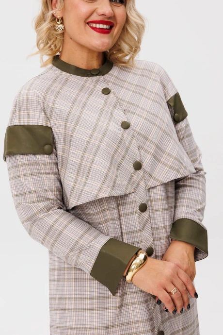 Элегантное платье прямого силуэта, выполненное из высококачественной костюмно-плательной ткани с изысканным клетчатым рисунком, станет идеальным выбором для уверенных в себе женщин. Эта модель, вдохновленная актуальным стилем «милитари», подчеркивает целеустремленный образ и индивидуальность своей обладательницы.