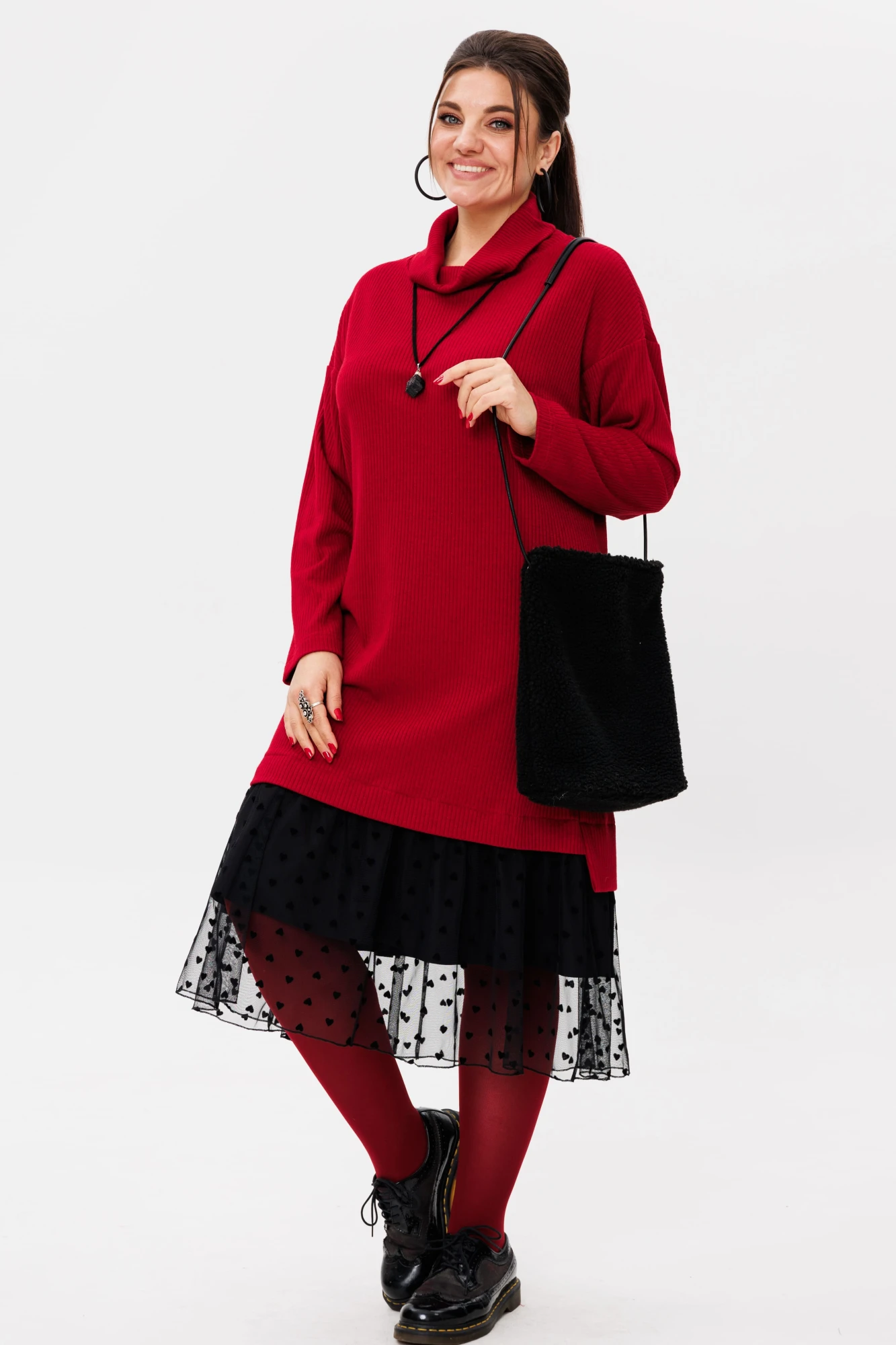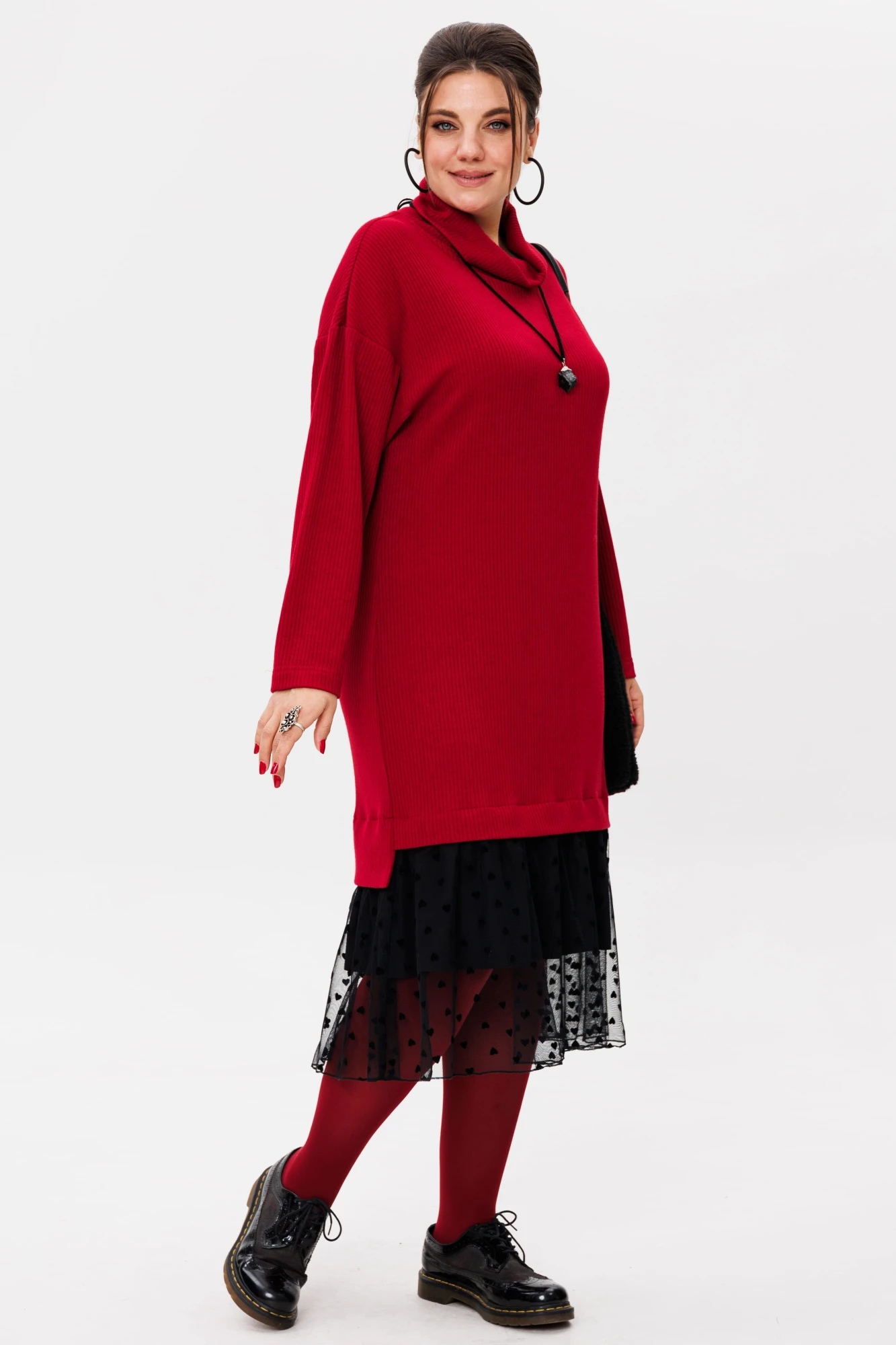 Сетчатая вставка по низу платья с рисунком в виде сердец добавляет игривости и романтизма.