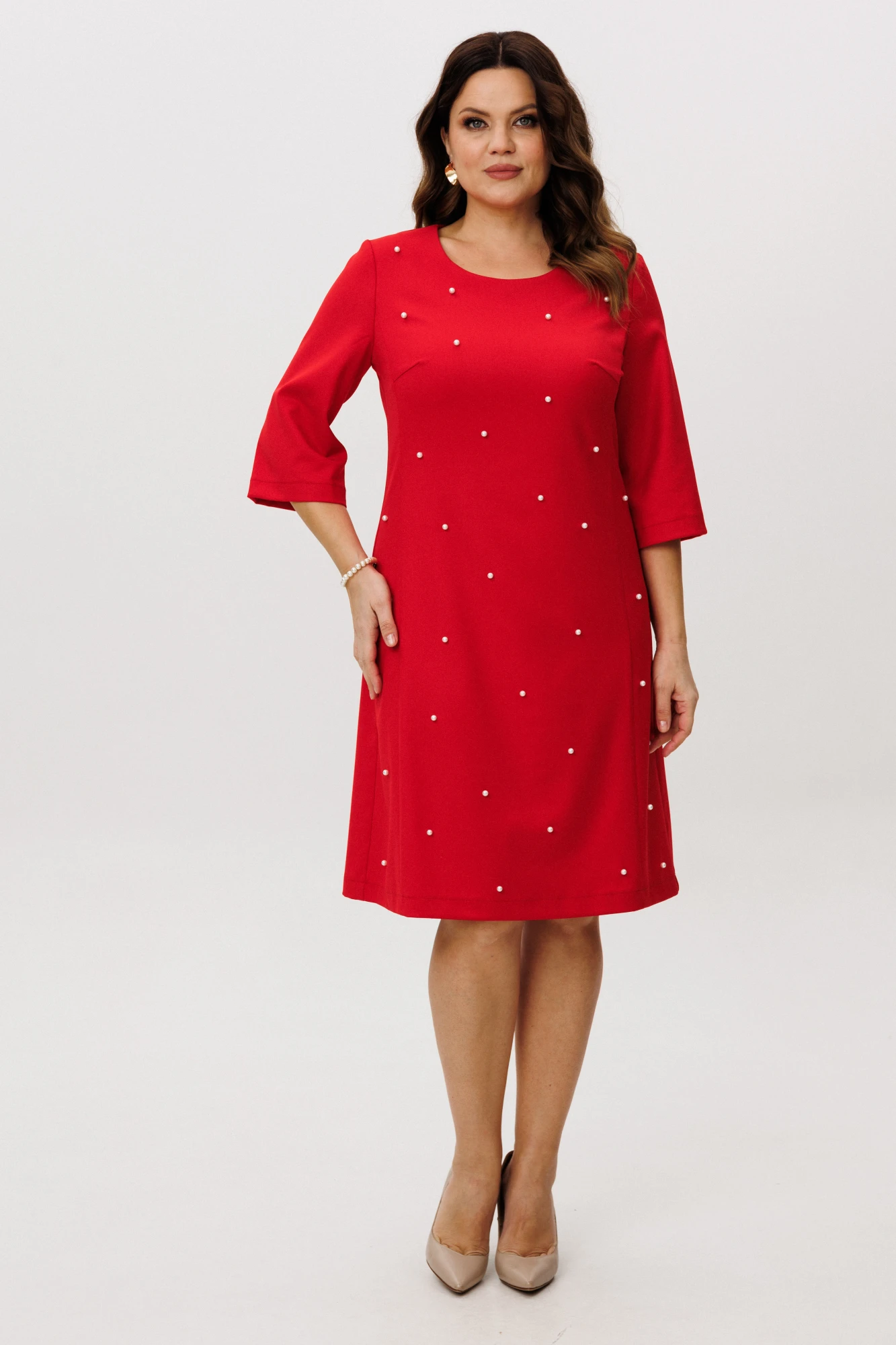 Платье на каждый день из костюмной ткани прямого силуэта умеренного объема. Вырез горловины округлый, по спинке застежка на потайную молнию, рукав 3/4 рубашечного покроя.