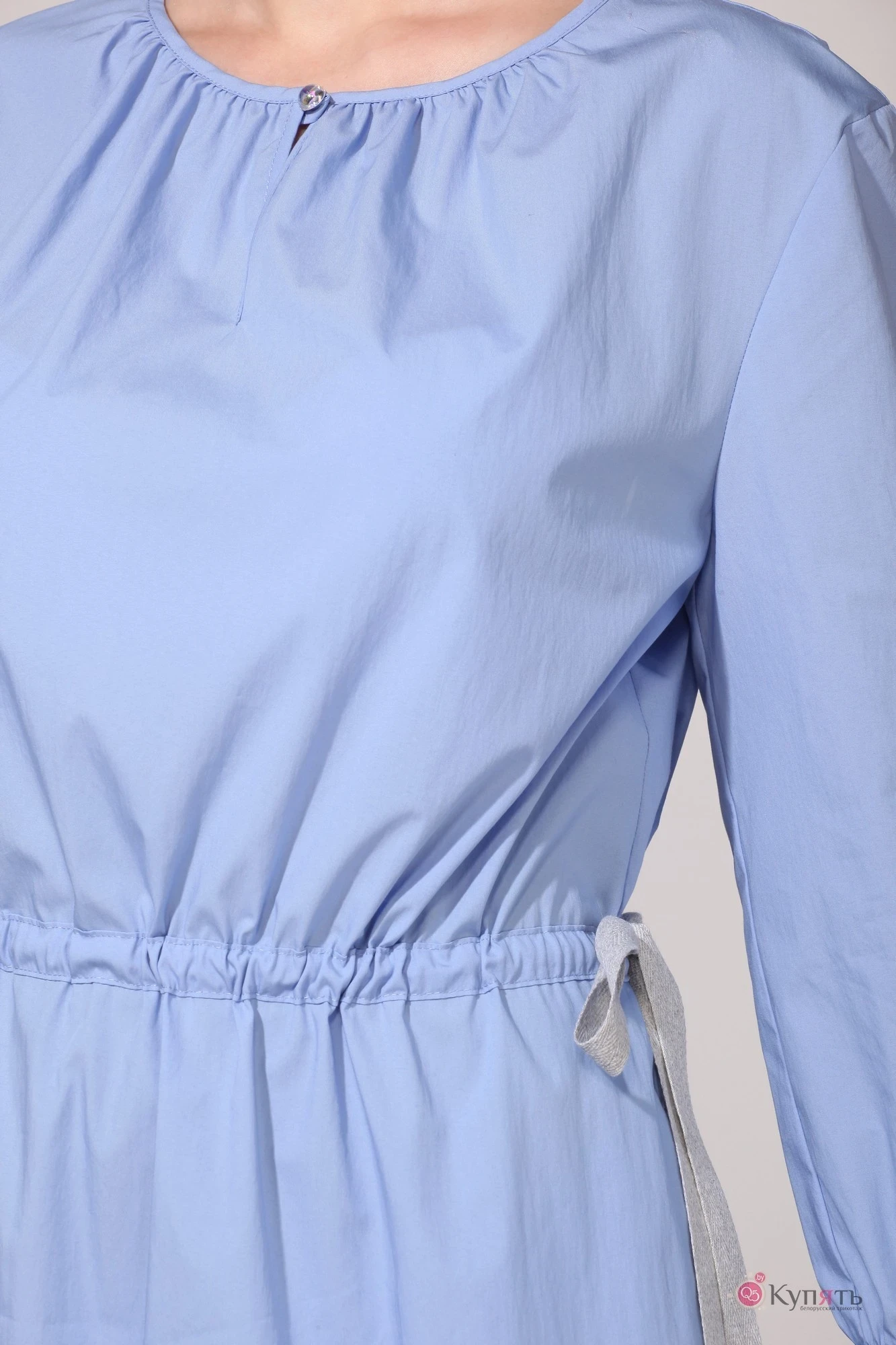 Женское платье прямого силуэта, с кулисой по талии. По низу притачной волан. В боковых швах карманы.