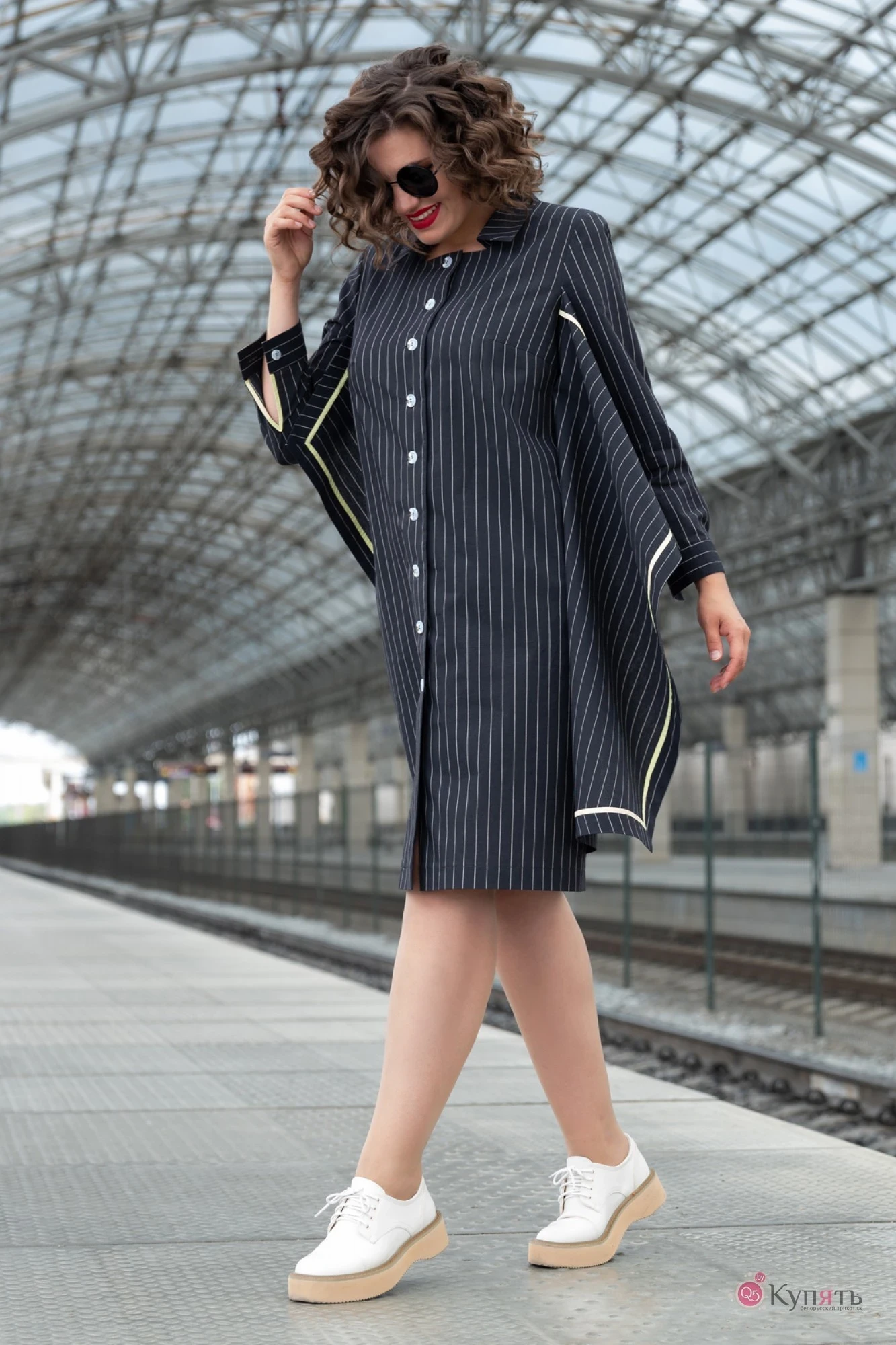 Повседневное платье полуприлегающего силуэта с отлетными бочкАми. Ткань костюмно-плательная, плотность средняя. Застежка на пуговицы спереди. В боковых швах удобные карманы.