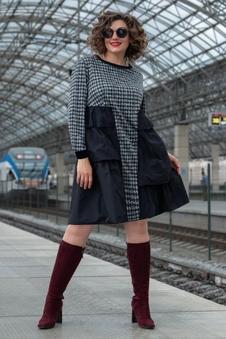 Трикотажное платье с воланами. Силуэт свободный, трикотаж плотный, но эластичный. В боковых швах удобные карманы.