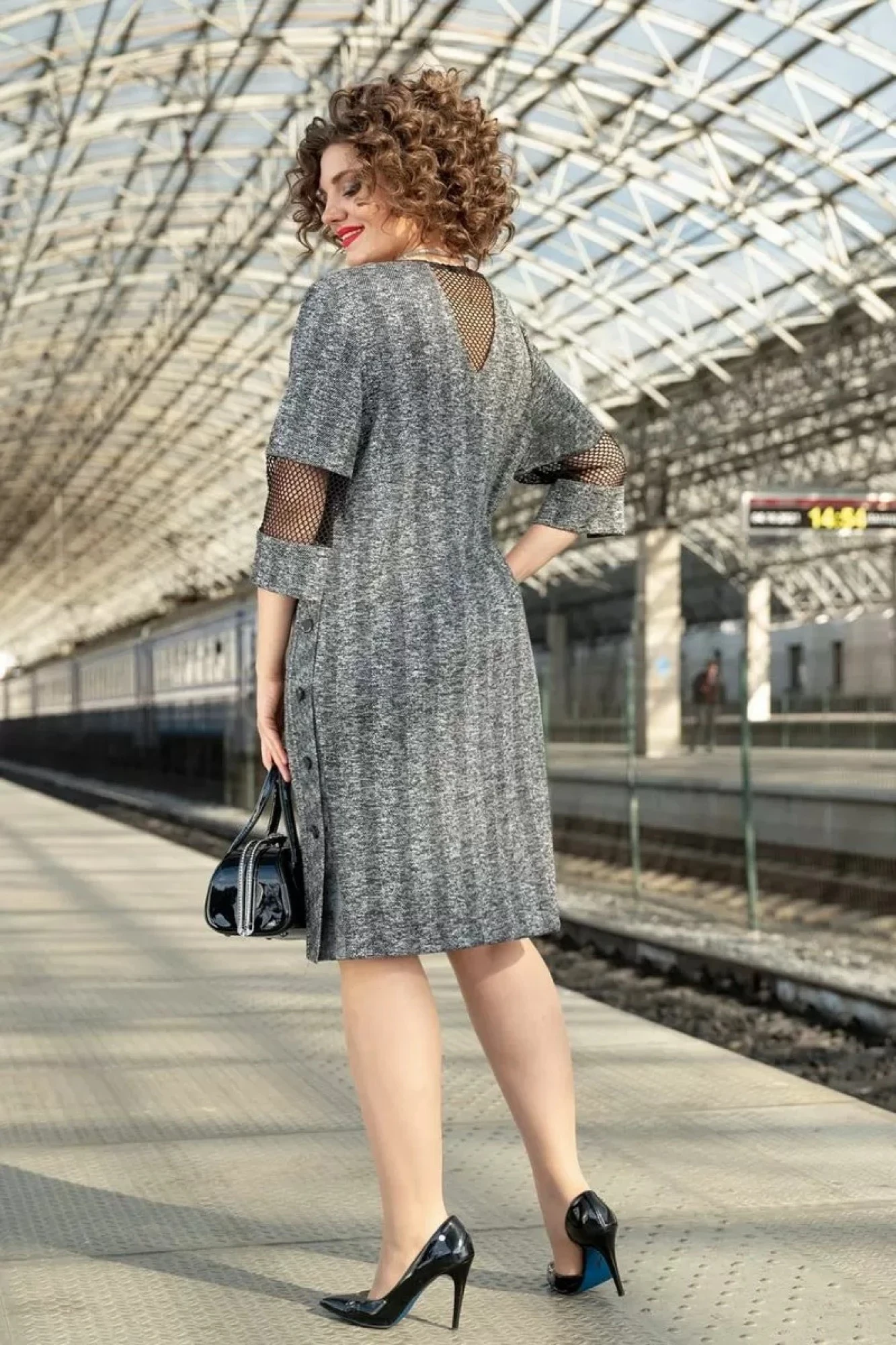 Нарядное трикотажное платье полуприлегающего силуэта. Трикотаж плотный, но эластичный. На переде шлица. Рукав втачной.