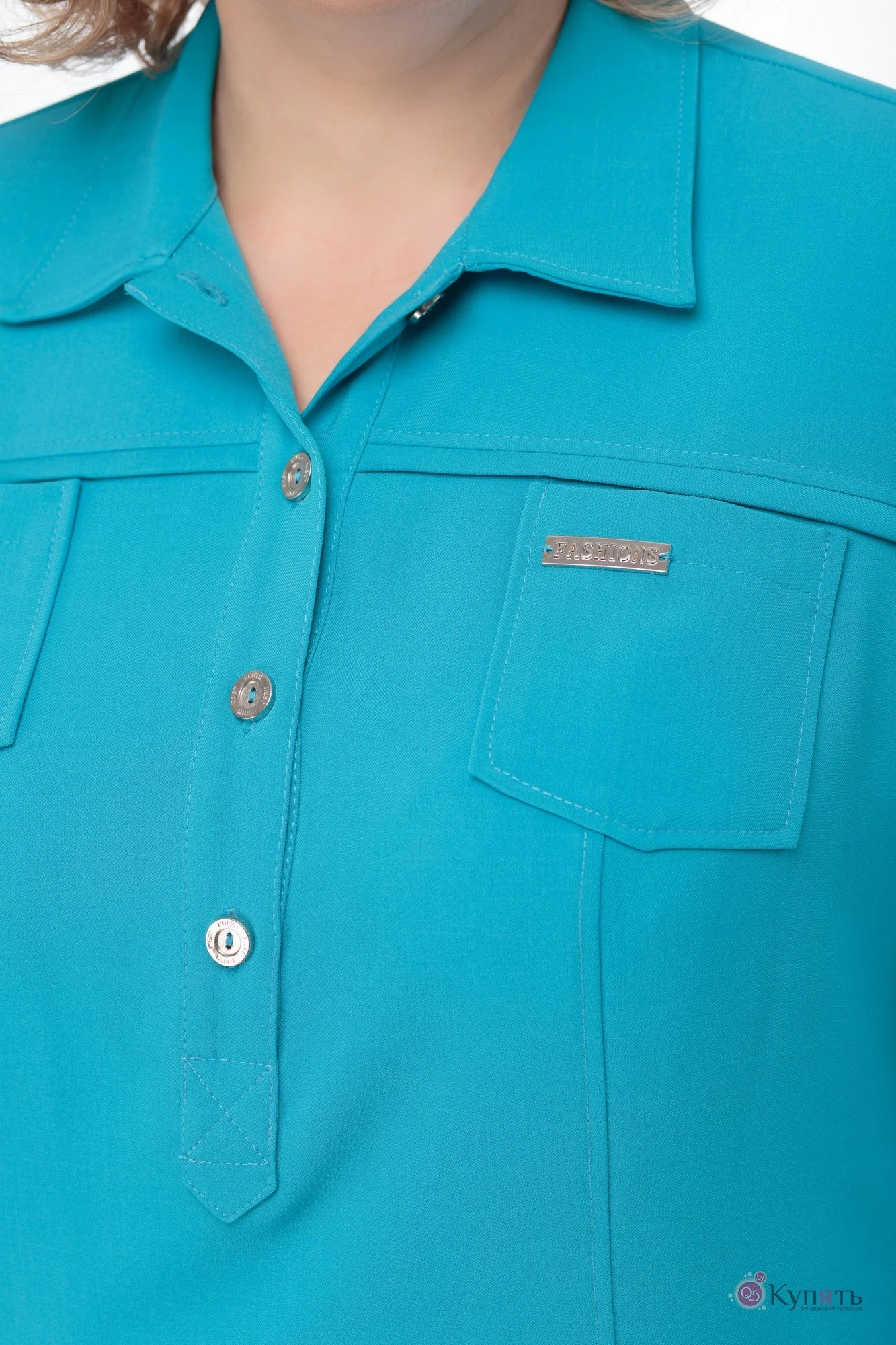 Платье женское, прямого силуэта. Два накладных кармана в верхней части платья, а так же на пуговицах. Рукав 3/4. Длина: миди.