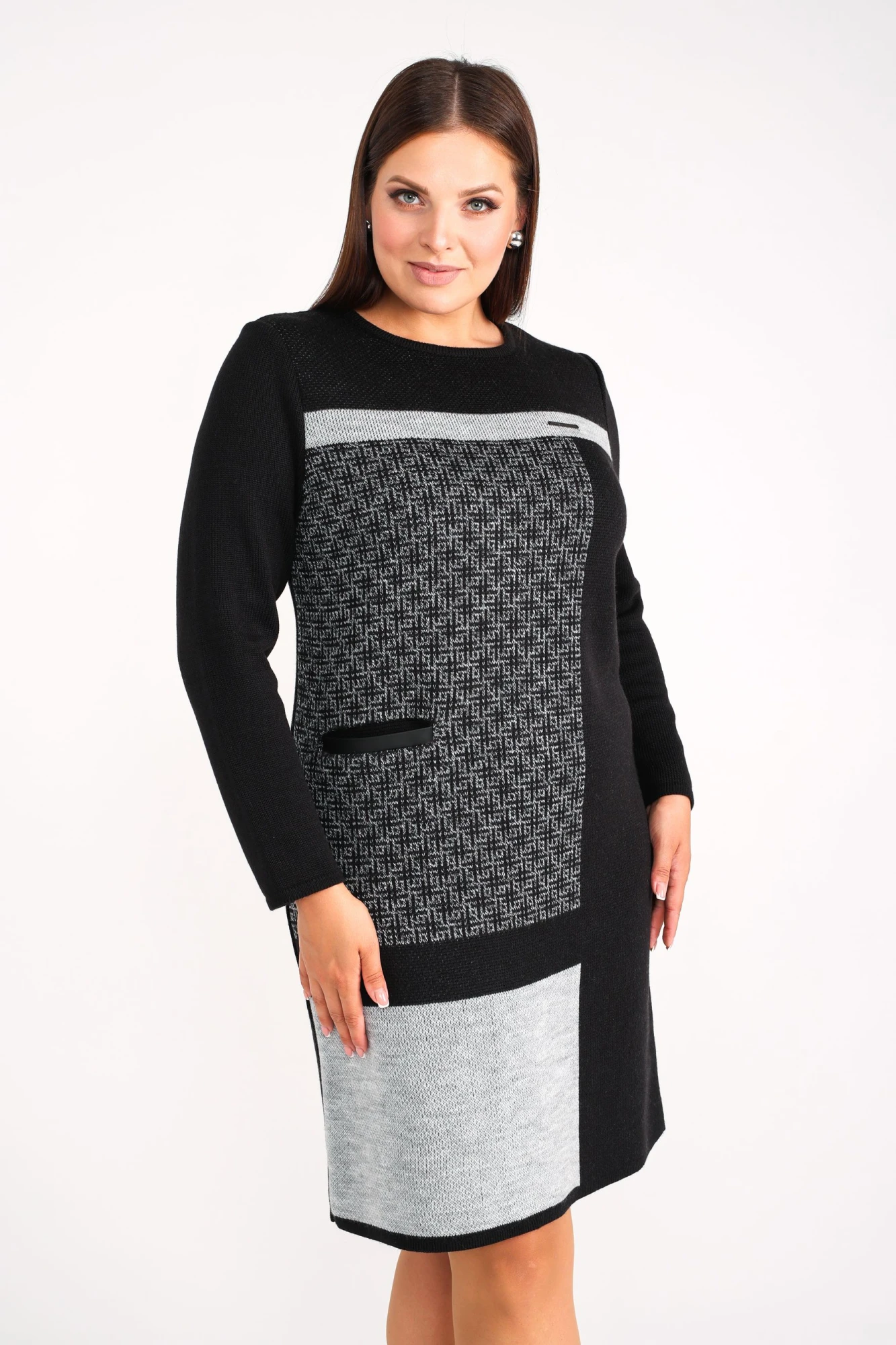 Женское вязаное платье с полуприлегающим силуэтом. В составе платья есть теплая и мягкая шерсть, поэтому идеально подходит даже для самых прохладных дней. Оно имеет длину до колена (длина миди и подходит на рост 164- 170 см), длинные рукава и прорезной карман, что добавляет ему практичности. Идеально подойдет для создания повседневного образа. Благодаря большим размерам, оно подойдет женщинам любой комплекции, в том числе и обладательницам пышных форм. Изготовленное из высококачественной и практичной пряжи, это платье можно носить в любой ситуации, будь то прогулка по городу или работа в офисе. Оно подходит для женщин любого возраста, а также для высоких и невысоких девушек. Шерстяное платье поможет создать не только повседневное, но и праздничное настроение. Оно отлично сочетается с различными аксессуарами и обувью, позволяя создавать новые образы каждый день