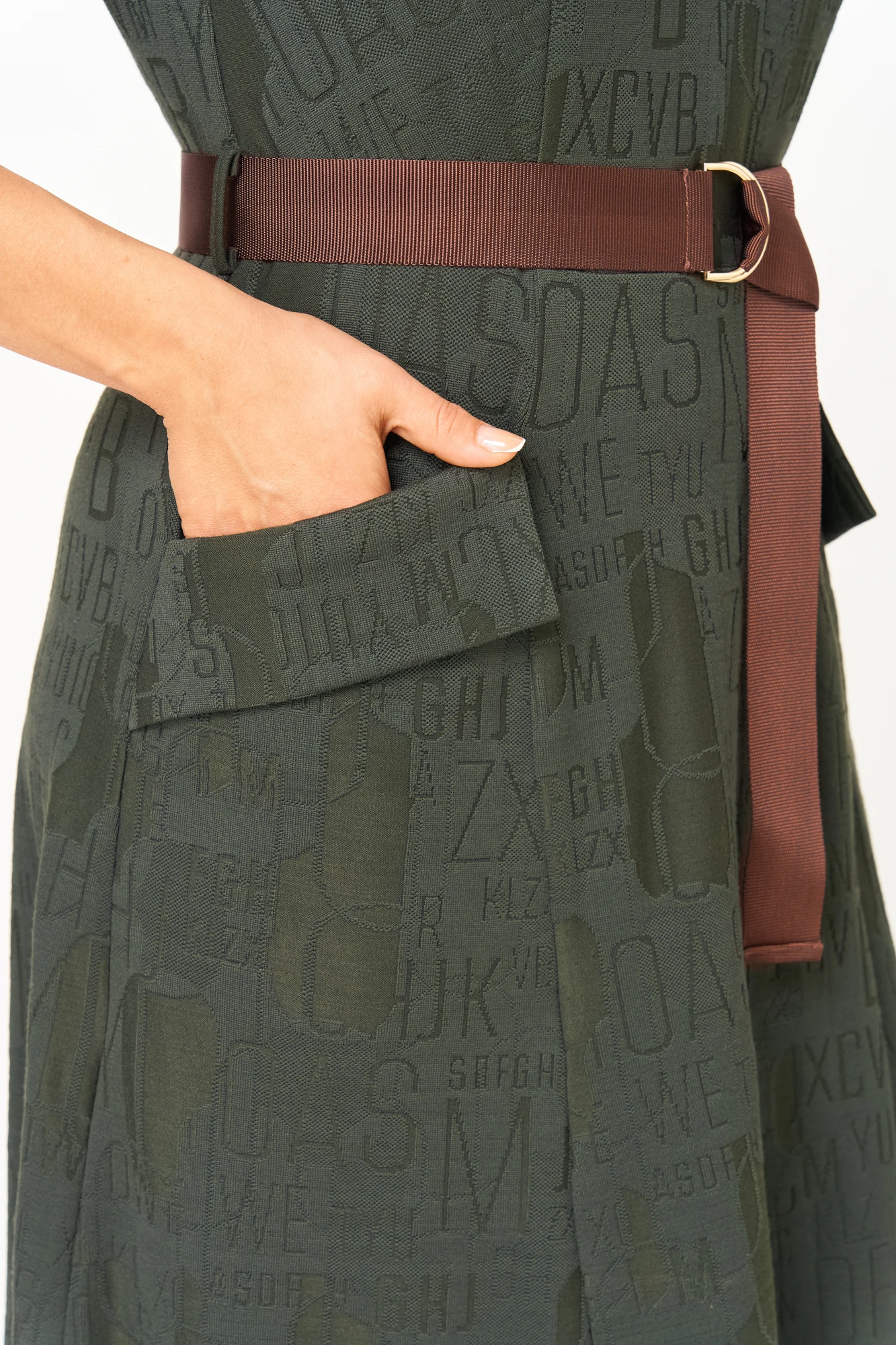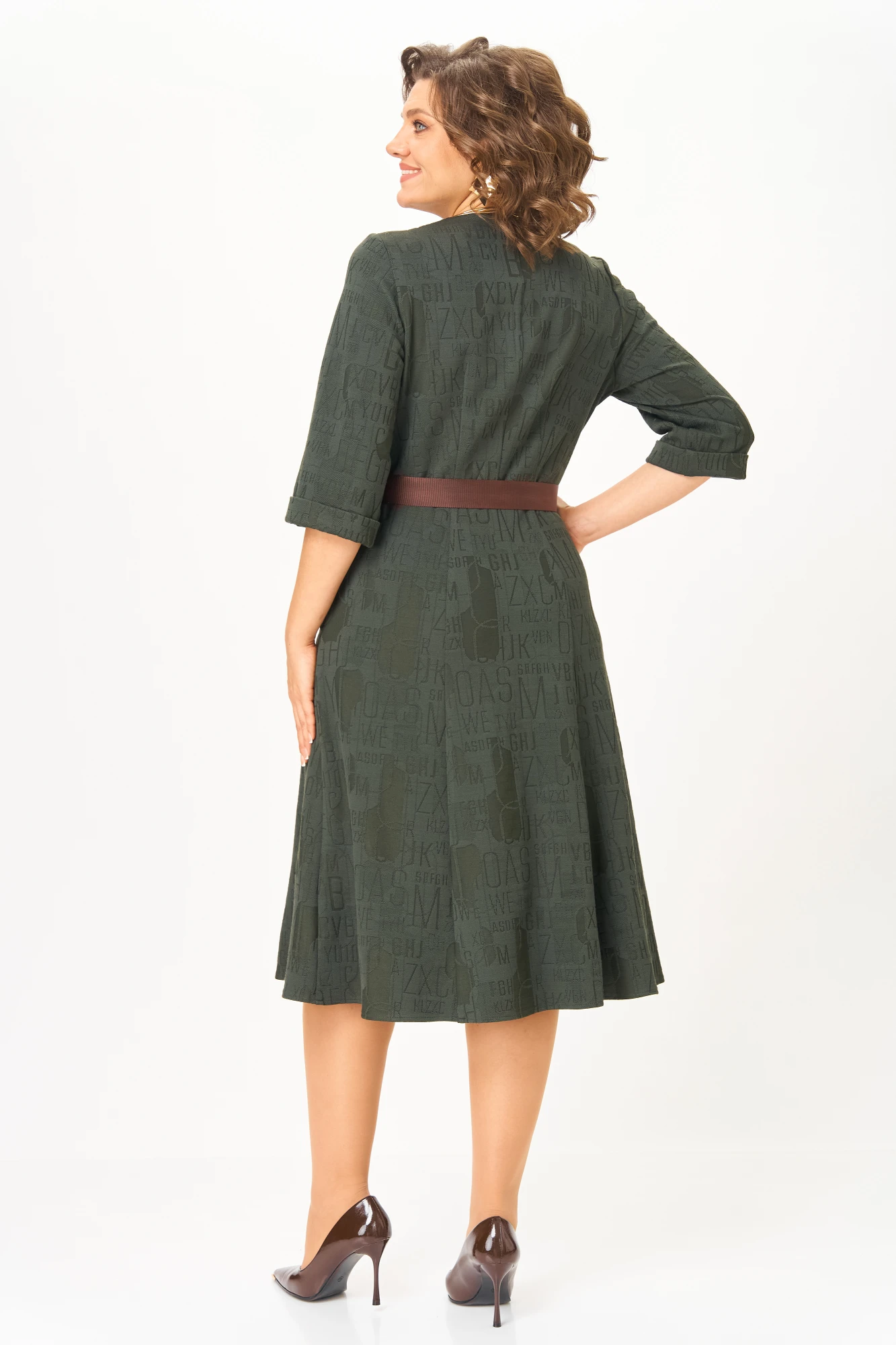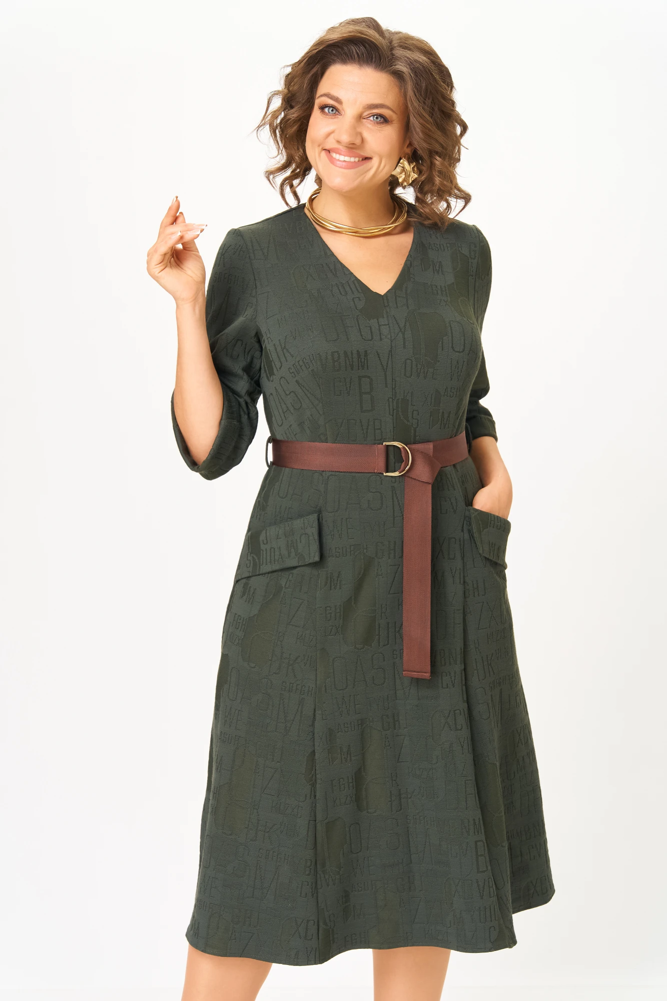 Платье полуприлегающего силуэта, отрезное по линии талии, юбка шестиклинка, расширенная к низу. На уровне бедер карманы с отложенным клапаном. На лифе по переду центральный шов, горловина V-образная.