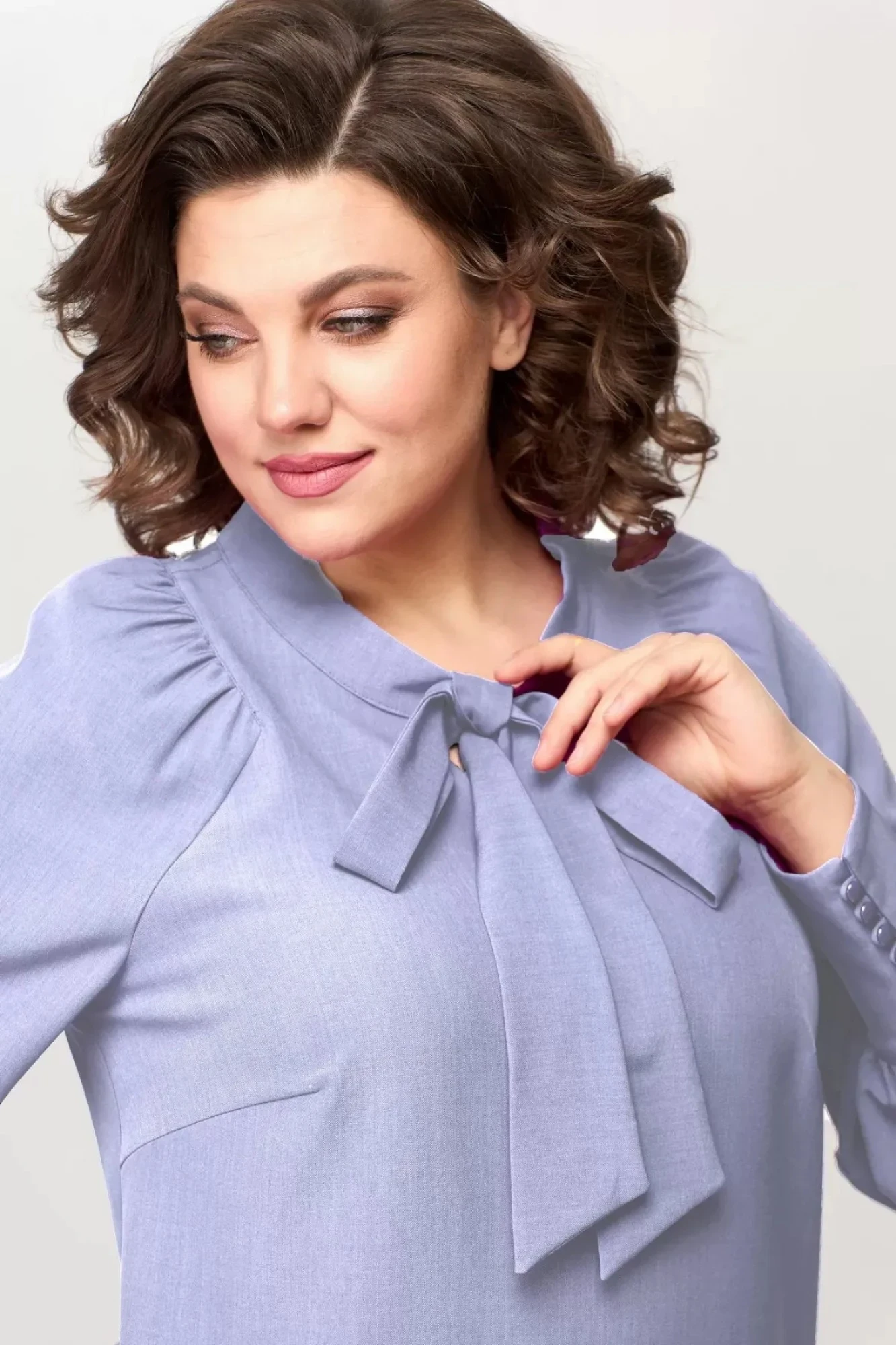 Элегантное женское платье из однотонной плательной ткани.