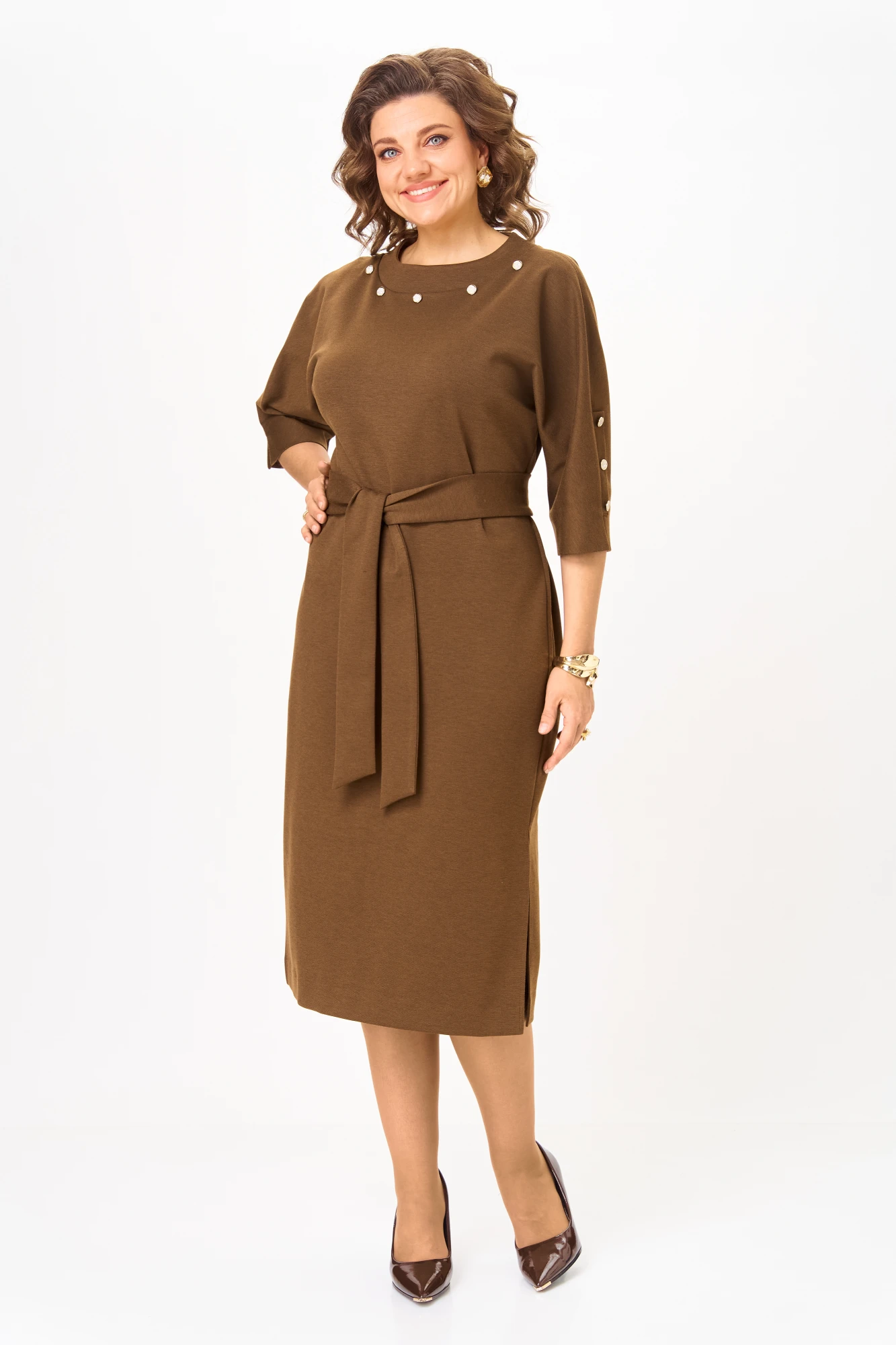 Платье с декоративным поясом из основной ткани и шлевками в боковых швах.