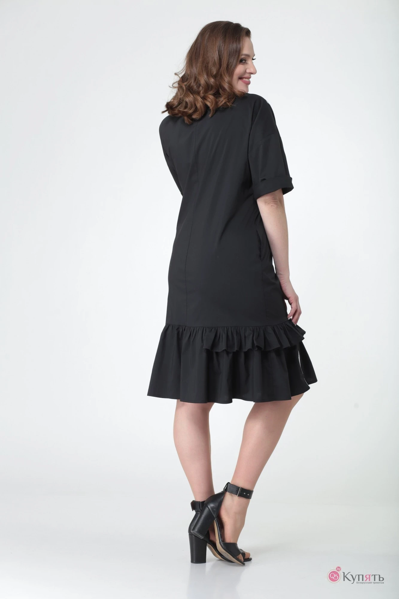 Модное и красивое платье актуально как никогда. Платье свободного прямого силуэта из хлопковой ткани с эластаном. Горловина округлая, обработана косой бейкой, линия плеча приспущена, рукав притачной , длиной до локтя, внизу рукава отложной манжет. Перед платья декорирован отделочной тесьмой и пришивным шевроном. Спинка с центральным швом. В боковых швах протезные внутренние карманы. По низу изделия выполнен широкий волан в сборку с декоративной тесьмой и рюшей с правовой стороны. Смело пополняйте свой гардероб таким вариантом платья: комфортное, легкое , сочетается с любой обувью и верхней одеждой.