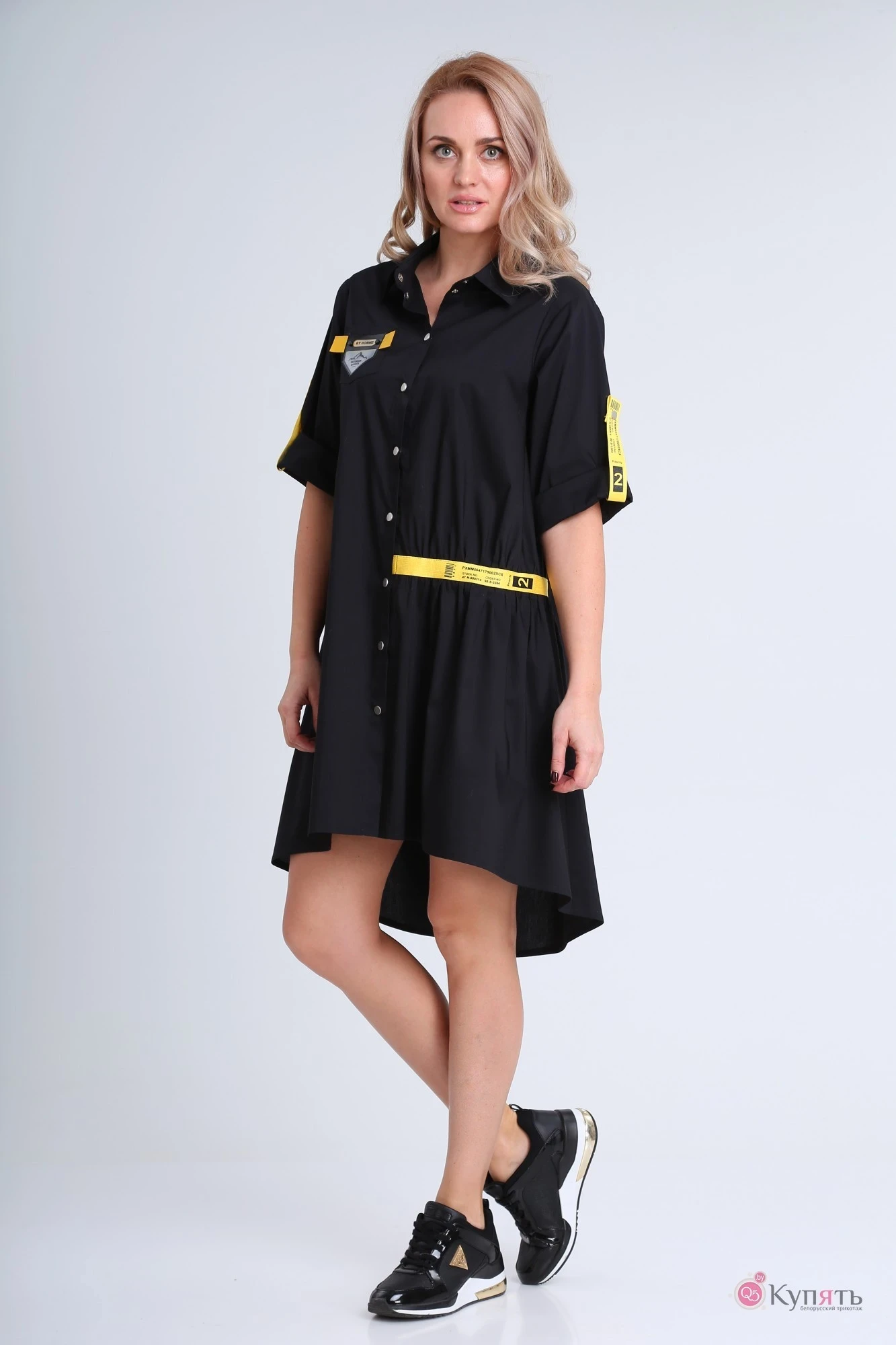 Удобное и стильное платье «oversize» силуэта-трапеция из мягкого материала(хлопок-стрейч). Круглый вырез дополнен воротником-стойкой классической формы. Спереди модель застегивается на контрастные кнопки по планке по всей длине, освежая образ. По левой полочке декоративный шов с яркой тесьмой и присборенной деталью добавляет оригинальности. На левой полочке лифа накладной декоративный карман. Платье по спинке с притачной кокеткой. Низ изделия фигурный и ассиметричный, спинка значительно длиннее переда. Линия плеча слегка приспущена, рукав втачной одношовный, длиной 3/4, с притачной патой из декоративной тесьмы с застежкой на кнопку, благодаря чему можно регулировать длину рукава. Приятный материал искусно обыгрывает силуэт, а стиль оверсайз создаёт не только удобство, но и помогает в некоторой степени создать расслабленный образ. Для завершения стильного образа можно выбрать как туфли на каблуке, так и любую спортивную обувь.