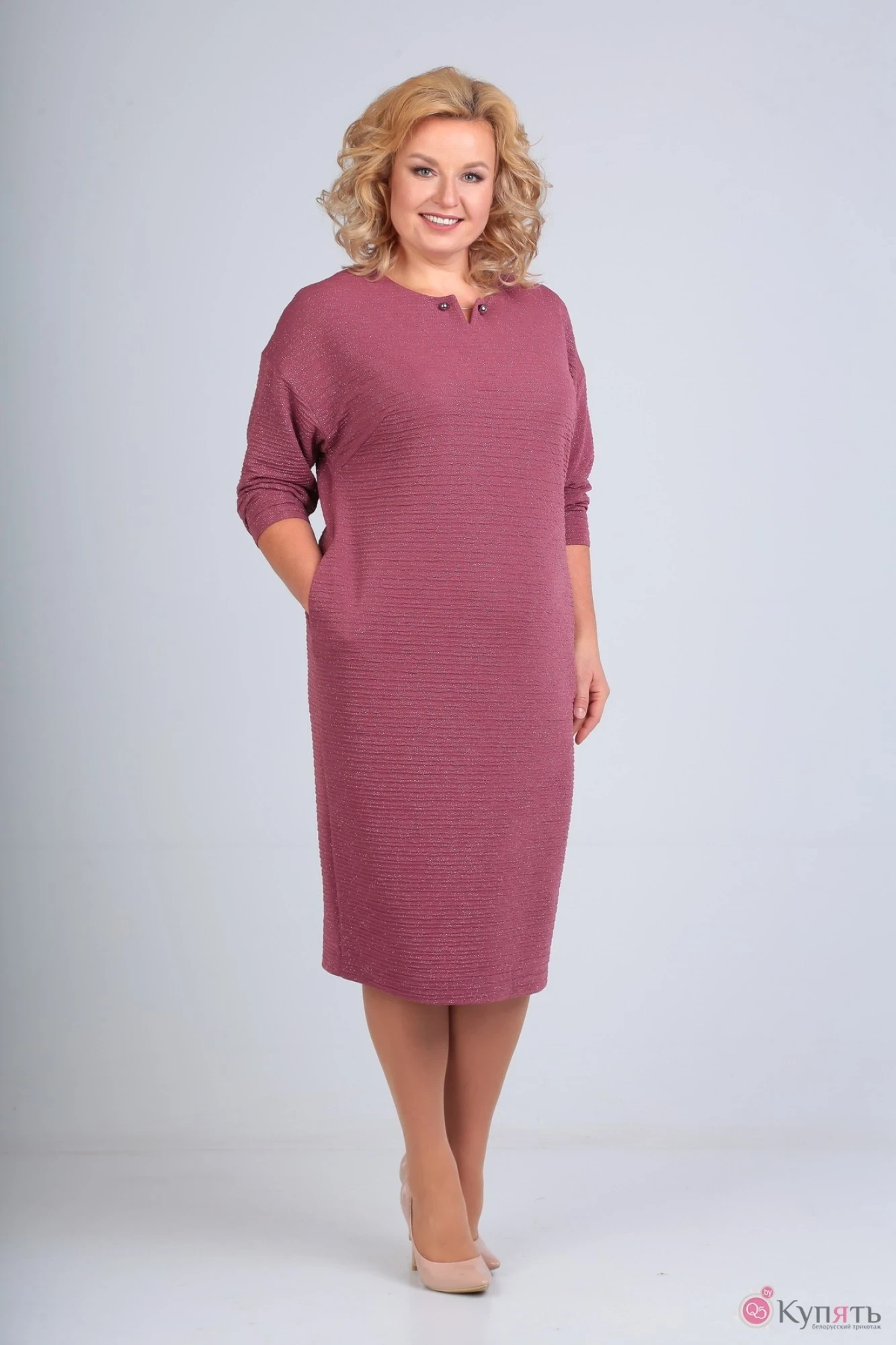 Платье женское свободного облегания со спущенной линией плеча. Спинка со средним швом и разрезом . Перед с нагрудными вытачками. Рукав втачной одношовный длиной 3/4. Горловина округлой формы с V-образным, фигурным вырезом , по центру обработан обтачкой. Украшение в виде булавки крепится по горловине.