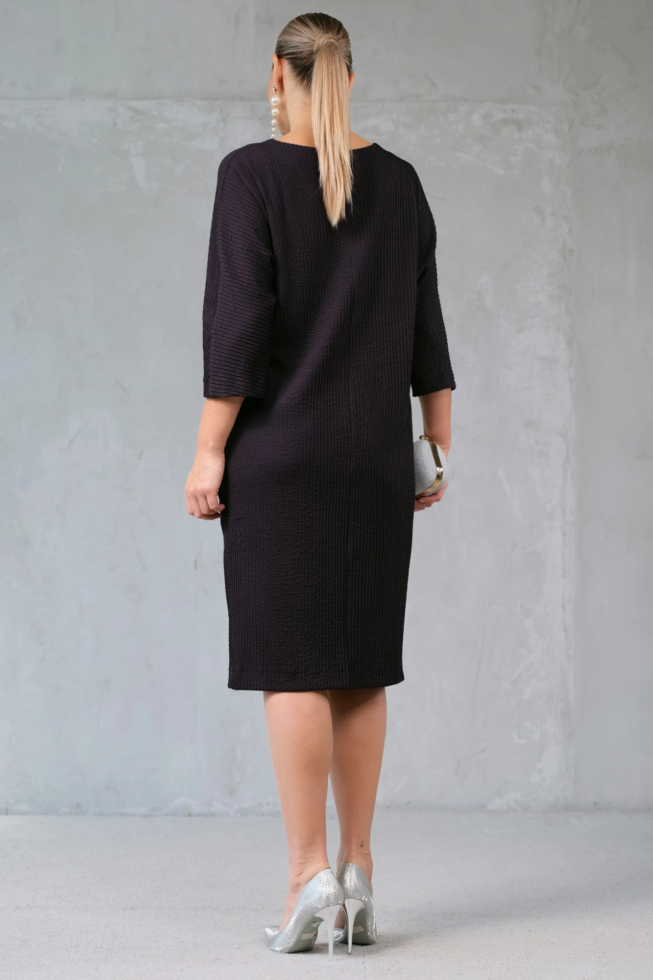 Наше платье создано, чтобы подчеркнуть вашу женственность и безупречный стиль. Идеальная длина чуть ниже колена – это классика, которая всегда выглядит элегантно и уместно, будь то деловой обед, свидание или вечерний коктейль. Рукав "три четверти" – это не только тренд, но и практичное решение: они добавляют образу утонченности, скрывая то, что нужно, и оставляя главное – вашу грацию. Вы почувствуете себя уверенно и комфортно в любой ситуации. Вырез, деликатно открывающий ваши ключицы, притягивает взгляды. Вы будете ловить восхищенные взгляды, ощущая себя настоящей богиней.