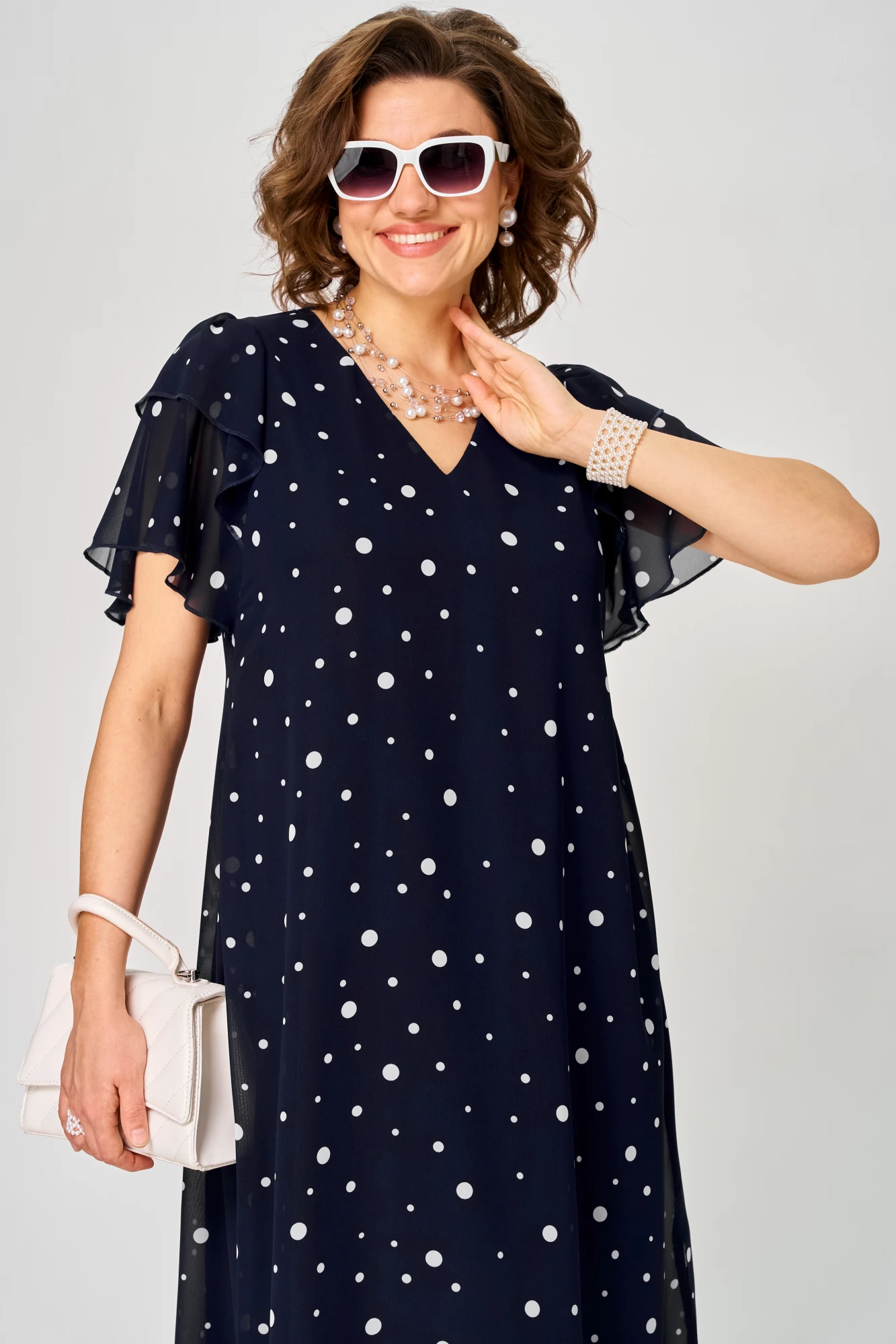 Платье EVA GRANT 7116 синий_горох