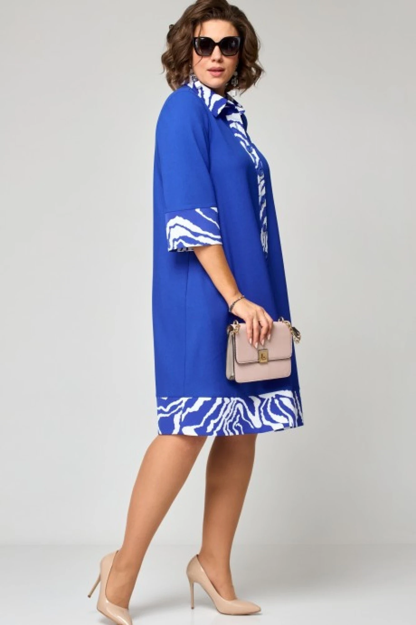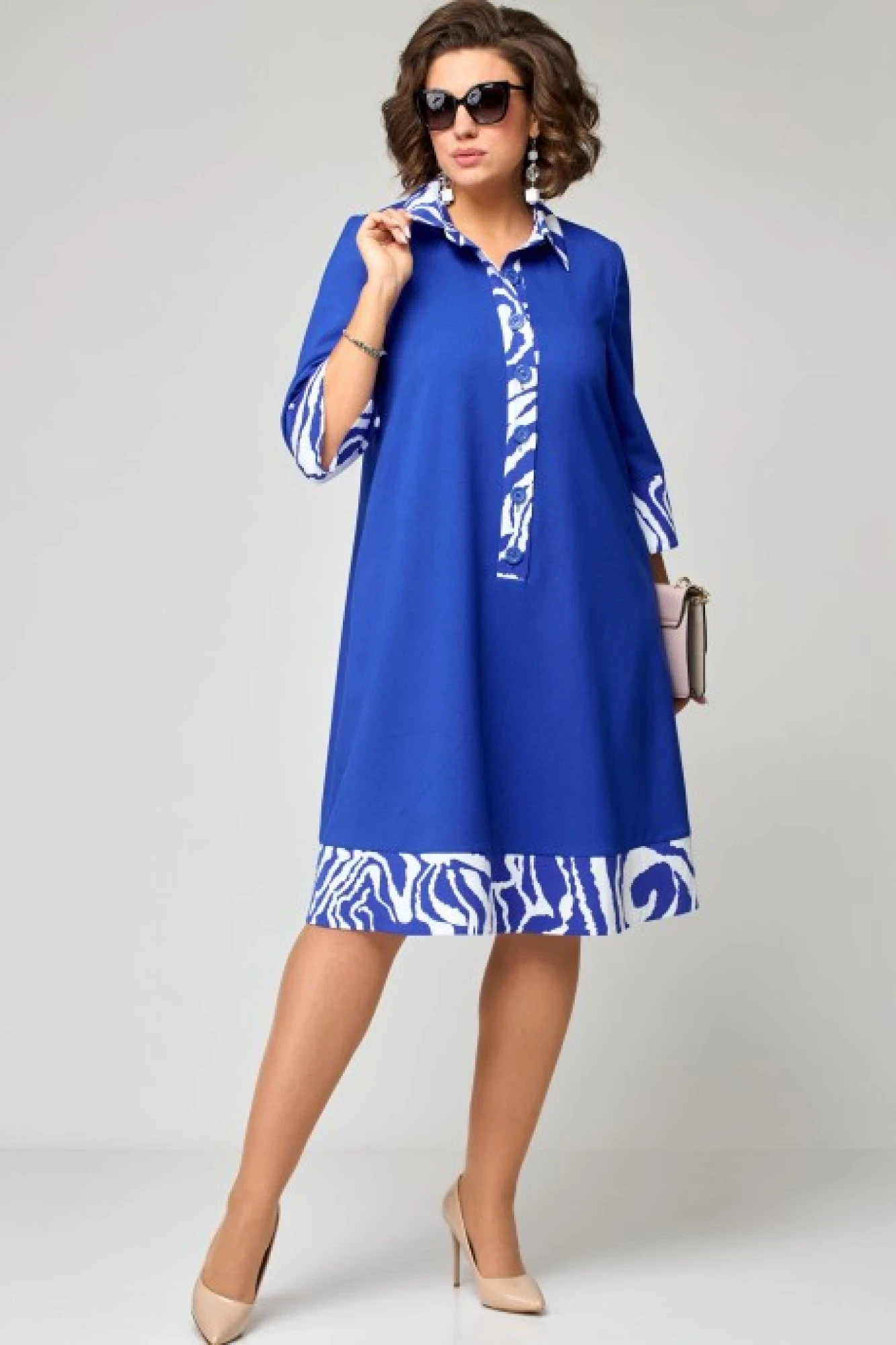 Платье женское повседневно-нарядное А-силуэта, выполнено из плательной ткани в сочетании с отделкой. Вырез горловины воротник на стойке рубашечного типа, по центру полочки обработана планка. Рукав втачной по низу на широкой притачной манжете из отделочной ткани. В боковых швахплатья обработаны карманы. Декором платья служат отделочные пуговицы на планке.
