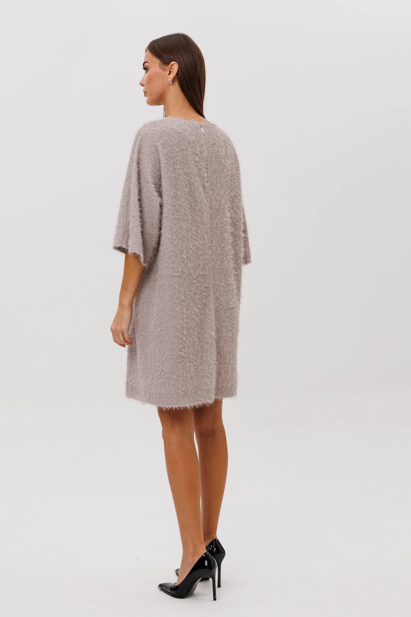 Лёгкое сияние волокон делает платье по-настоящему нарядным, но при этом универсальным: в нём одинаково эффектно выглядят и в повседневной обстановке, и на вечерних встречах. Удобная застёжка-молния на спинке завершает образ продуманной функциональностью.