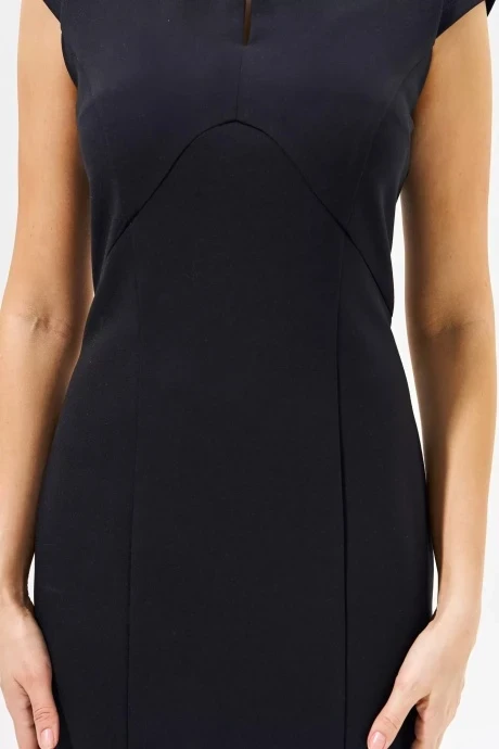 Платье женское полуприлегающего силуэта с конструктивными фигурными линиями и небольшим разрезом по переду выполнено из трикотажного полотна средней плотности. Рукав- крылышко предствляет собой стильный и универсальный элемент, который придает образу женственность. По спинке - потайная тесьма-молния.