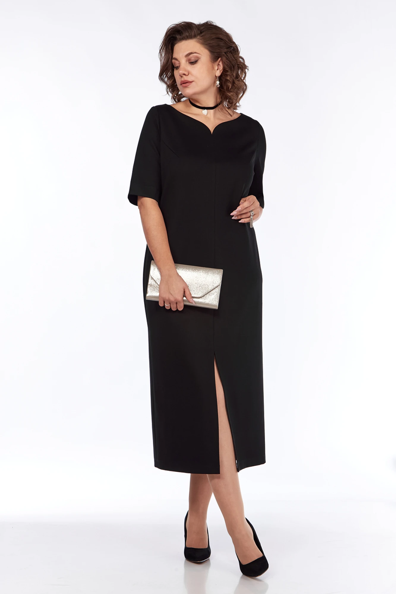 Платье женское, нарядное, полуприлегающего силуэта выполнено из фактурного трикотажного полотна премиум-класса. Горловина фигурной формы. Перед с нагрудными вытачками и средним швом в котором обработан разрез. Спинка со средним швом. Рукава втачные, одношовные с небольшим разрезом по шву.