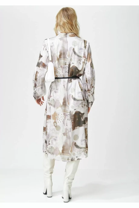 Струящееся шифоновое платье (в этой модели мы используем новое качество шифона с легким благородным блеском), длинной ниже колена, трапециевидного силуэта с V-образным вырезом горловины, переходящим в небольшую стойку по спинке. От плечевого шва у горловины – складка. Платье хорошо подходит на разные типы фигур, так как оно без нагрудным вытачек и без подрезов на талии, приталить платья легко за счет ремня, который идет в комплекте с платьем. Рукав платья втачной, с легкой сборкой у манжеты. Манжета застегивается на петли и пуговицы. По центру переда – шов. Все линии платья служат тому, что бы “вытягивать” фигуру придавая ей легкость и стройность. Платье отлично подойдет для различных мероприятий, как для праздников, так и для офисный будней. Платье на трикотажной подкладке.