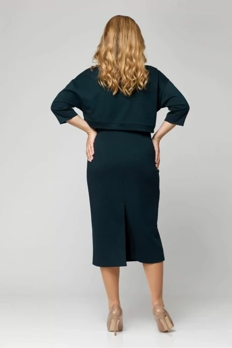 Платье женское, полуприлегающего силуэта, двухслойное, соединенное по горловине, длиной до середины икр, с застежкой на 2 кнопки на левом плечевом шве. Деталь переда нижнего слоя платья с нагрудными вытачками. Деталь спинки нижнего слоя платья с талиевыми вытачками, со средним швом, который заканчивается разрезом. Верхний слой платья свободного силуэта, длиной до линии талии, со спущенной линией плеча, с втачными рукавами, понизу притачная планка. Рукава втачные одношовные, длиной 3/4. Вырез горловины платья округлой формы. Длина спинки – 116см. Длина рукава - 30см, ширина рукава – 23см.