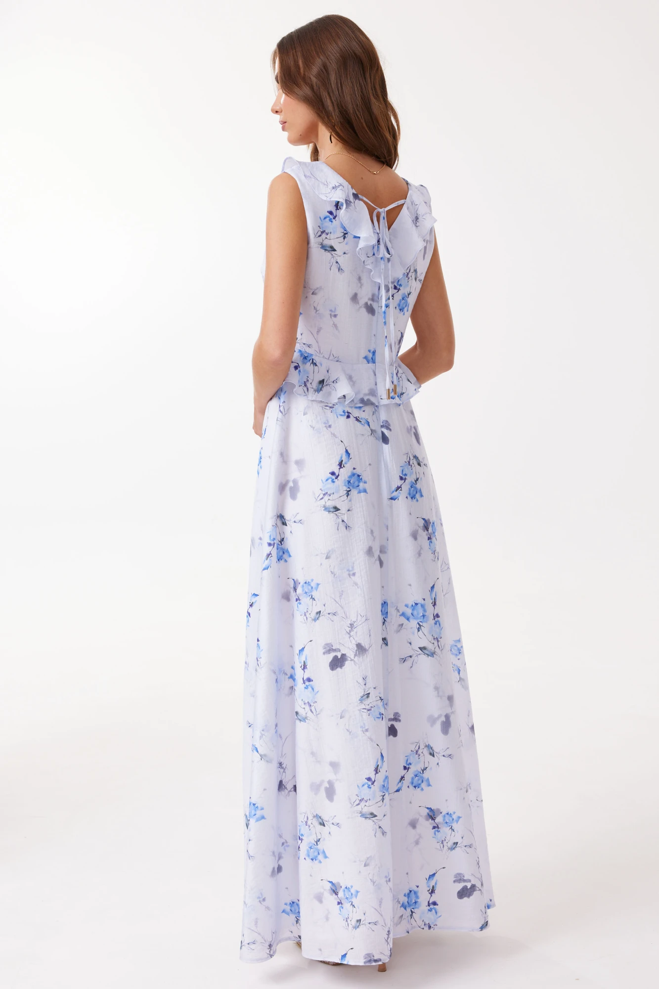 Платье полуприлегающего силуэта, расширенное книзу, из хлопковой ткани. По переду и спинке на уровне талии декоративный подрез, в который вставлен волан. По спинке v-образный вырез с завязкой в виде шнурка из основной ткани, в среднем шве застежка на потайную молнию. Обращаем ваше внимание, что фурнитура может отличаться от фото. ПОДКЛАДКА! Модель подойдет на рост 164-170 см. На этикетке будет указан рост 170 см