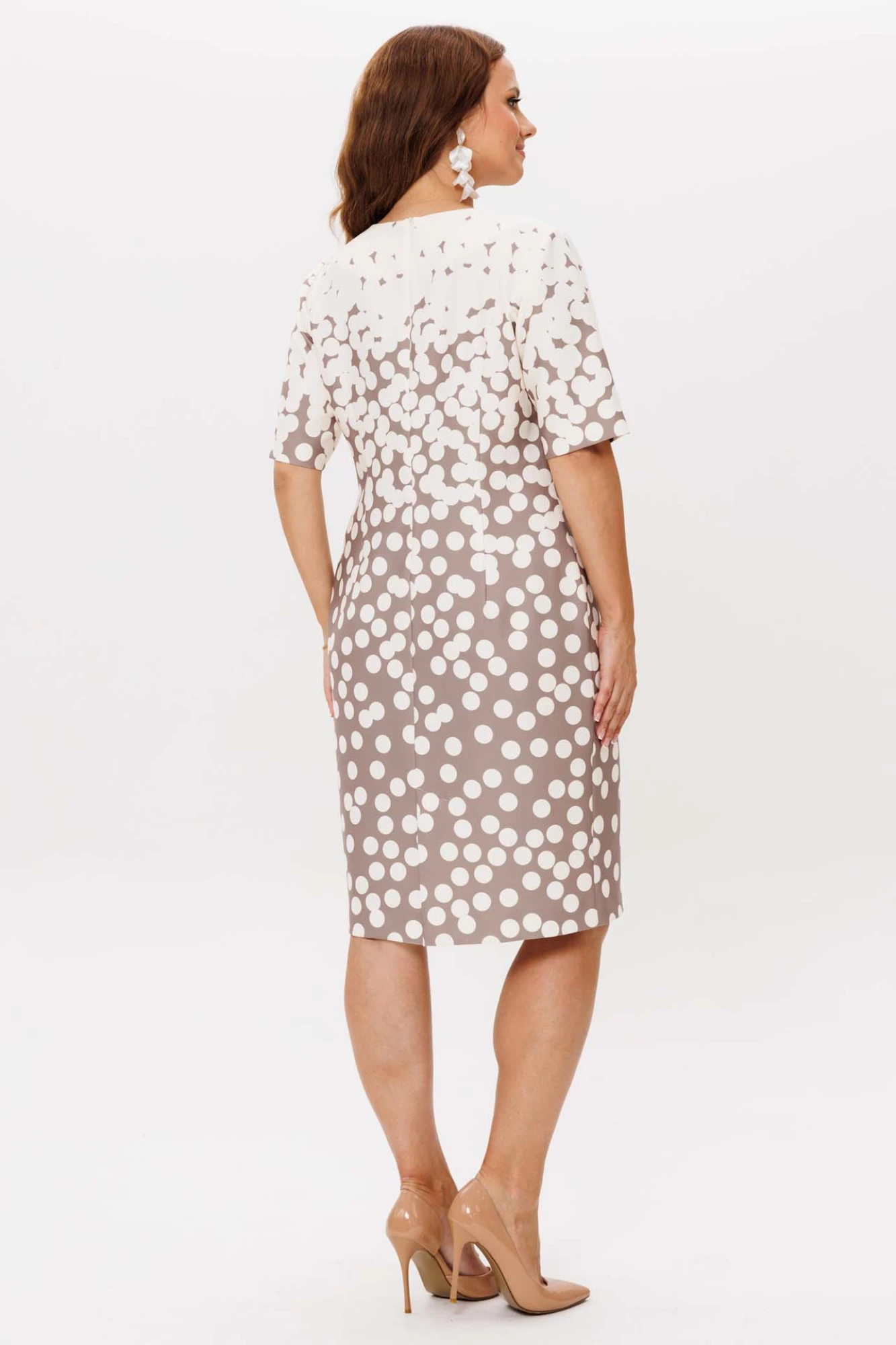 Платье женское полуприлегающего силуэта, перед с нагрудными и талиевыми вытачками, спина с талиевыми вытачками, средним швом, который заканчивается шлицей. Рукав втачной. Горловина руглая. В среднем шве спики обработана тесьма-молния.