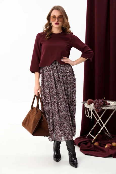 Платье макси комбинированное, двухцветное. Лиф фигурный по низу, выполнен из костюмной ткани. Вырез горловины полукруглый, по спинке затежка на молнию. Рукава втачные. Юбка на резинке, драпирующаяся, расширенного силуэта из шифона. На подкладке.