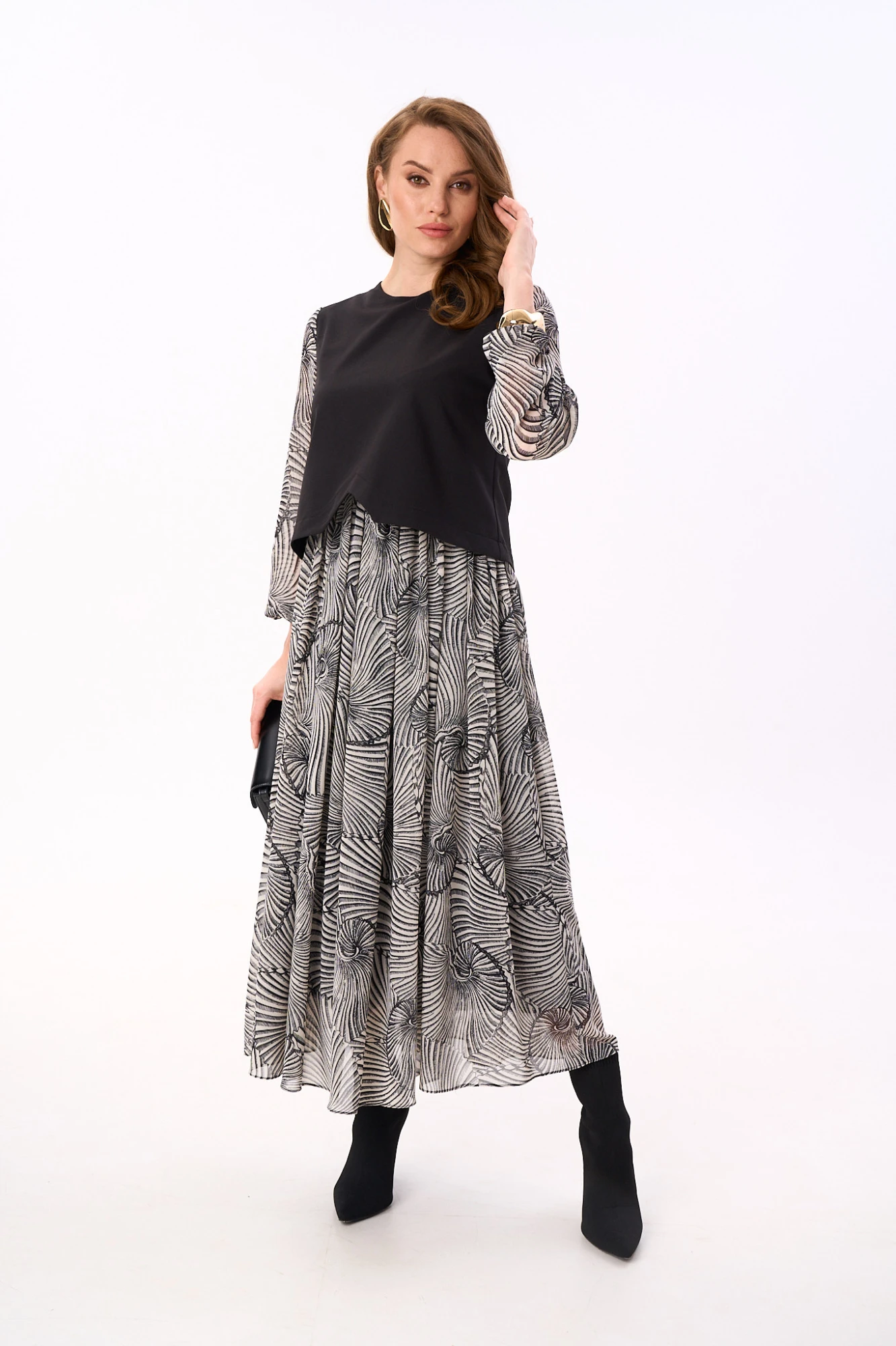 Платье NikVa 740-18 чёрный и черно-белые ракушки