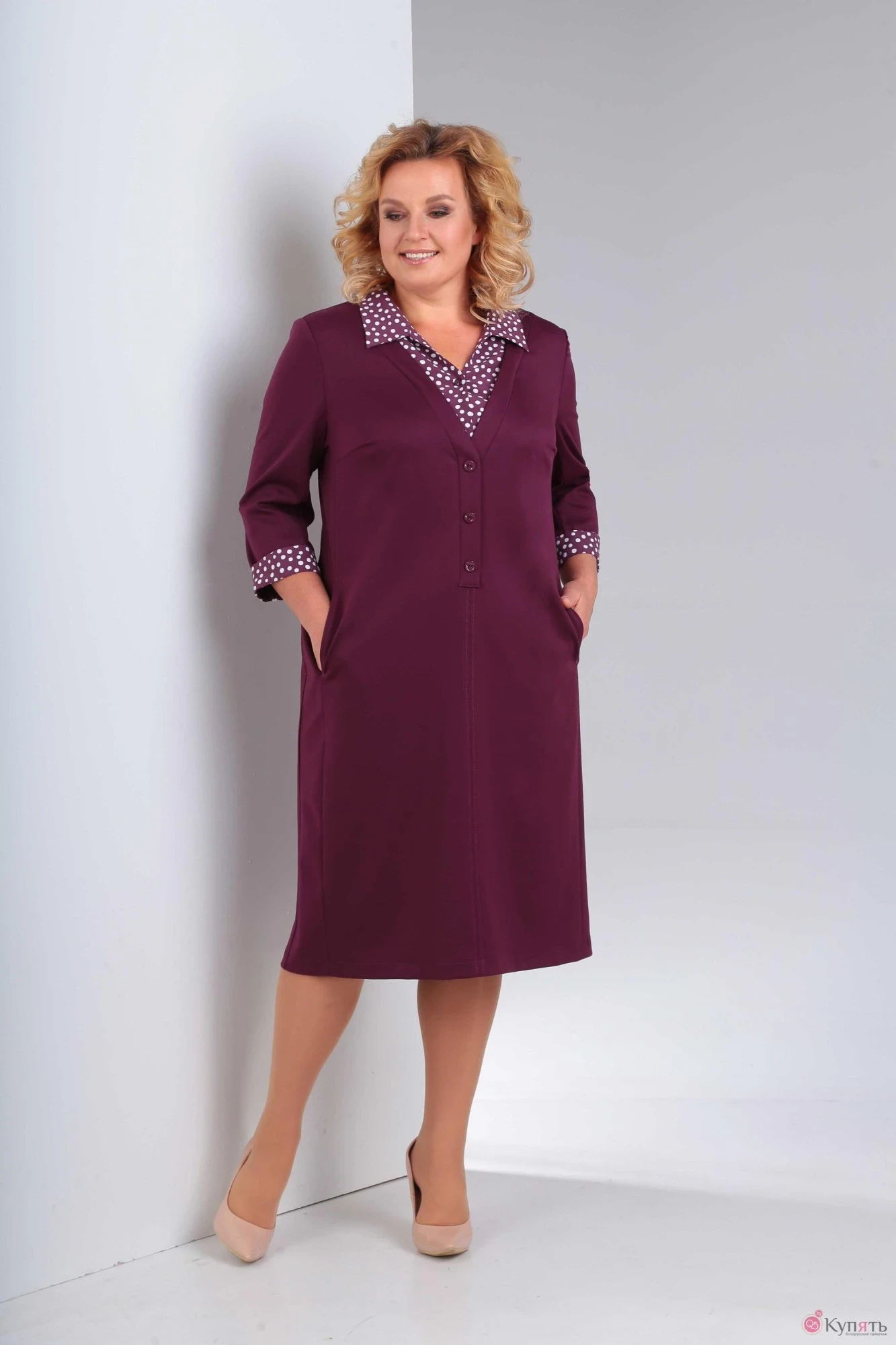 Платье из трикотажного полотна выполнено в виде имитации платье+блуза.По переду декоративная застежка на пуговицы и по бокам платья функциональные карманы.На спинке имеются рельефные вытачки из проймы и центральный шов, переходящий в шлицу. Рукав двушовный с отложной манжетой.