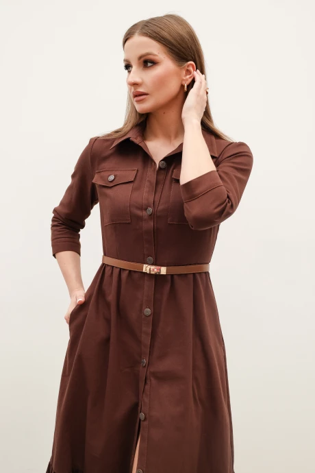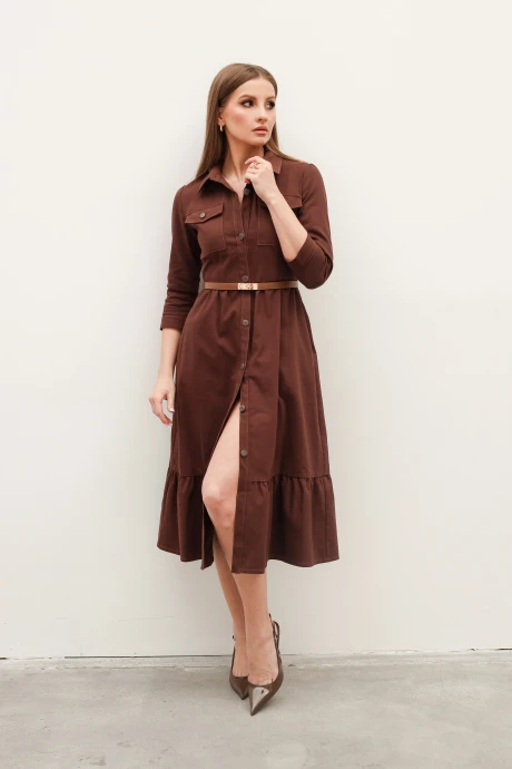 карманами с клапанами. Юбка А-образного силуэта, с воланом по низу.
