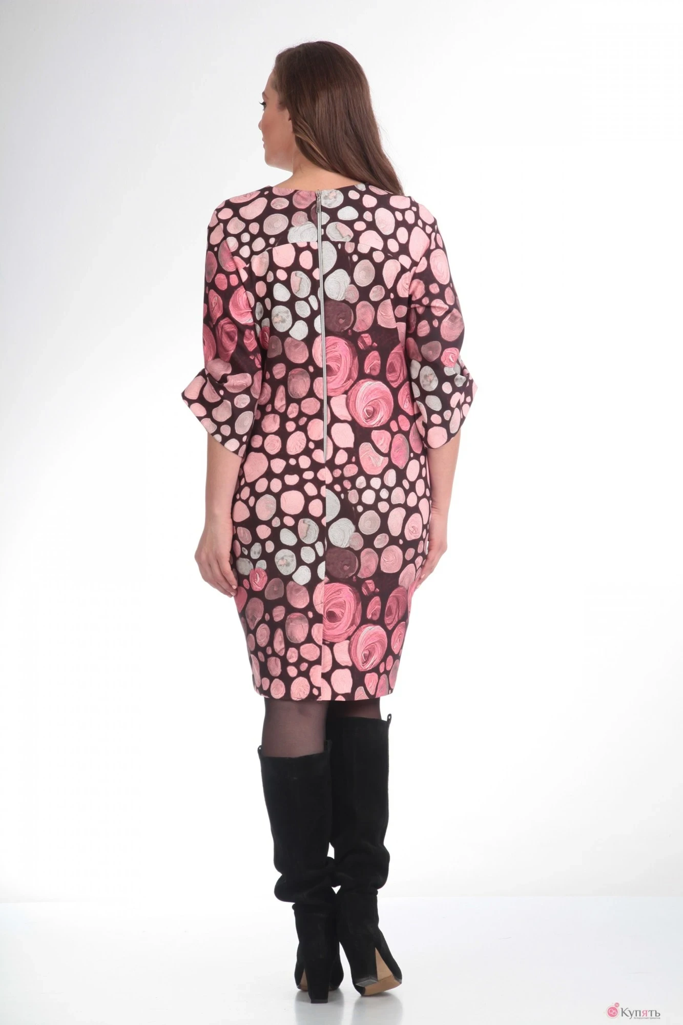 Платье свободного покроя с треугольным вырезом и плечевой вытачкой до центра груди. В среднем шве спинки декоративная молния и шлица. По верху спинки декоративная кокетка цельнокроеная с рукавом. Рукав прямой с защипом по верхнему шву. Силуэт: прямой.