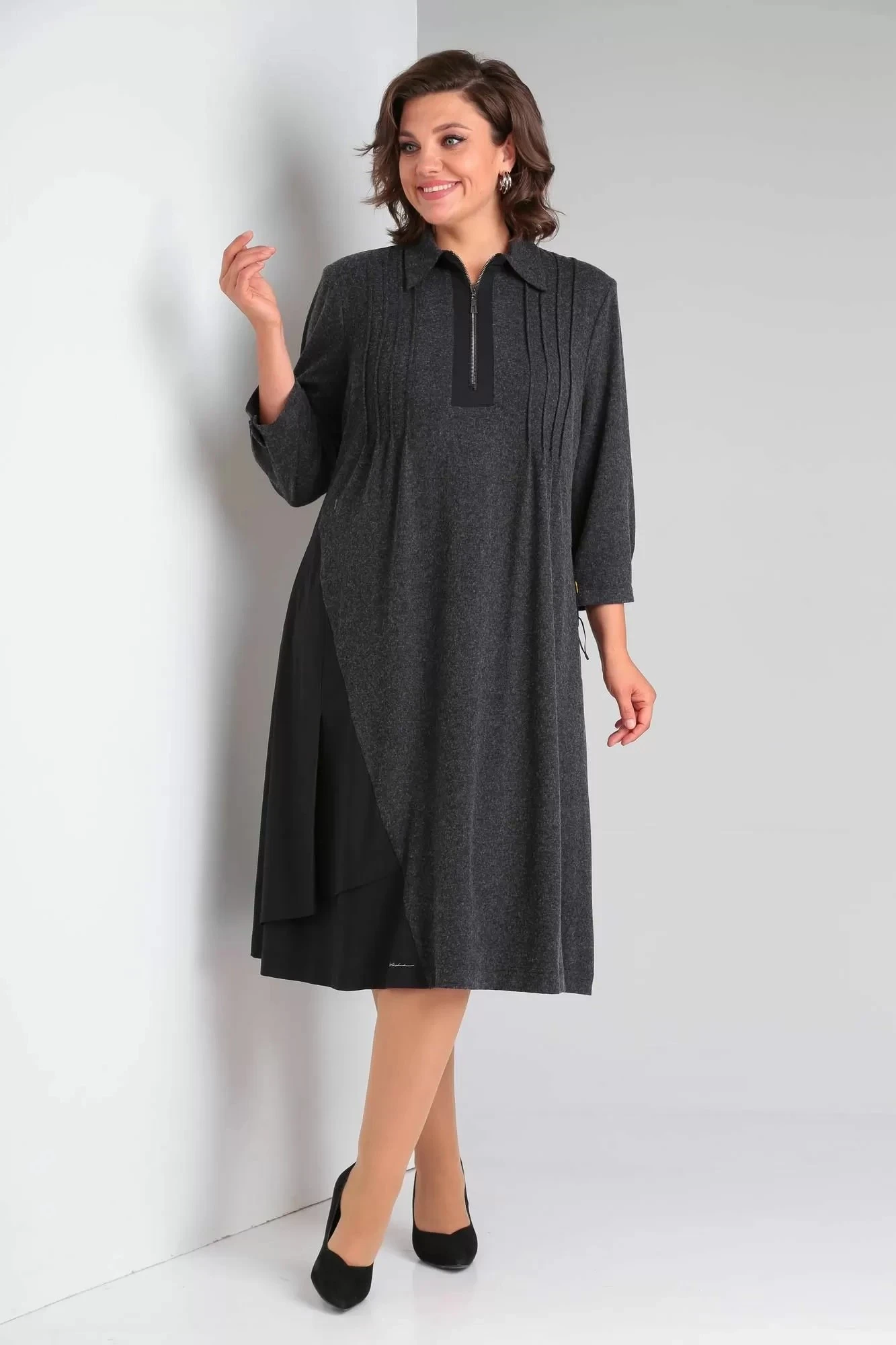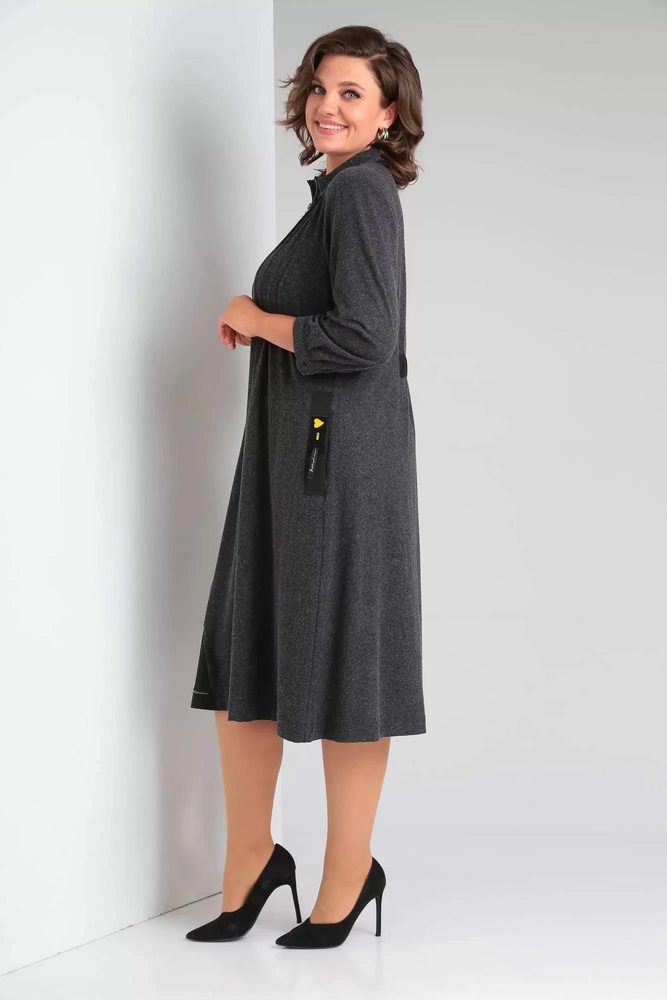 Платье женское из лёгкого трикотажа с ангорой, с декоративными элементами из хлопка -это нежность, привлекательность и уверенность. Платье полуприлегающего силуэта , по полочке от плеча до линии груди застроены складочки к низу они дают лёгкое расклешение в юбке. Застежка -молния в декоративном обрамлении с отложным воротником, в правом боку декоративный элемент из хлопка с застроченными складками переходящий на сторону спинки, так же в боковых швах карманы с листочкой из хлопка с декоративным элементом. Спинка прямого силуэта, по линии талии хлястик с резинкой. Рукав 3/4 одношовный с манжетой , с застёжкой на петлю и пуговицу. Платье как праздничное так и повседневное, поэтому в нем вы всегда на высоте