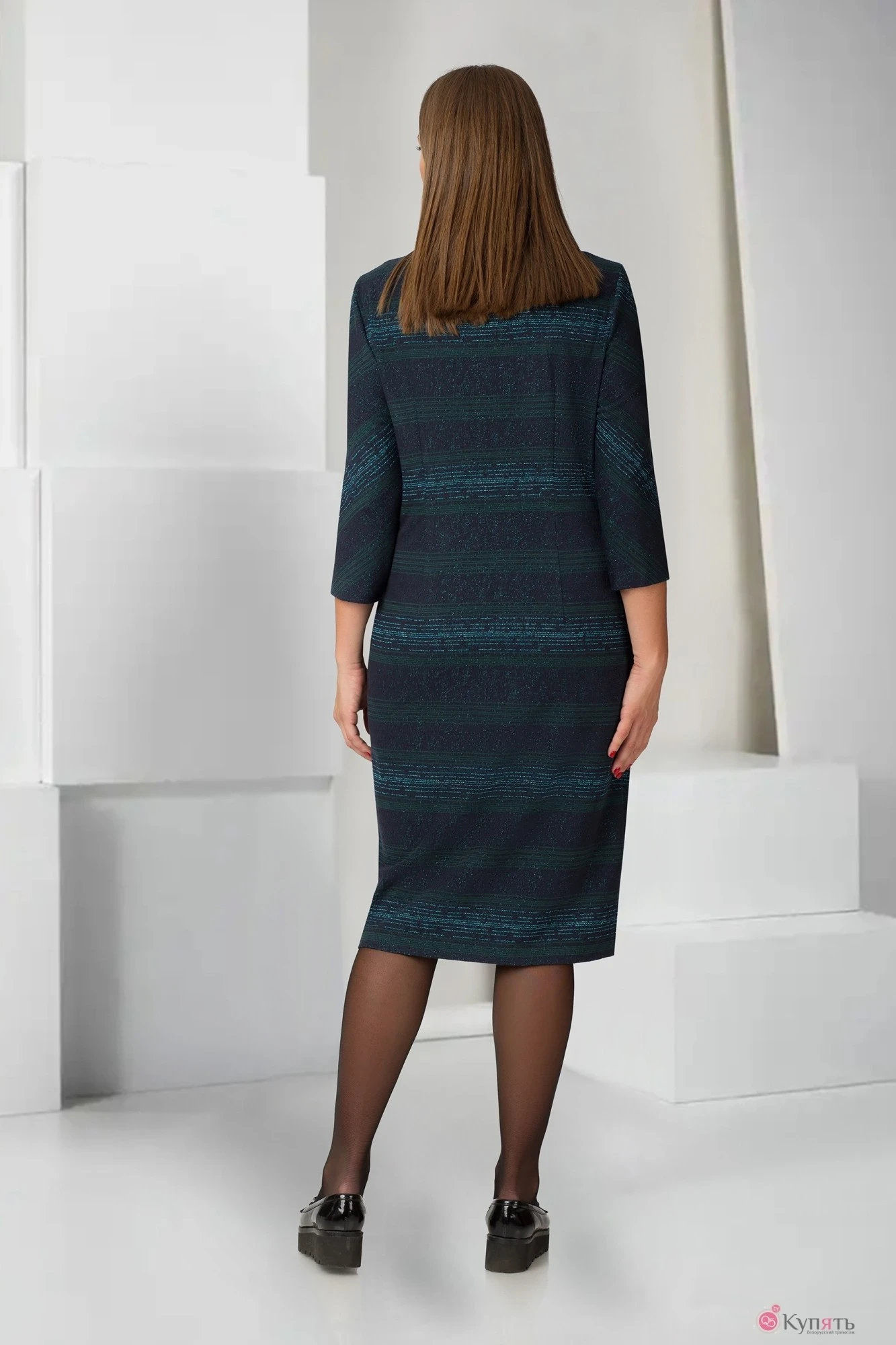 Платье женское из трикотажного плотна полуприлегающего силуэта. Полочка с притачной кокеткой, по горловине декорирована люверсами и завязками. Спинка цельная с талиевыми вытачками.