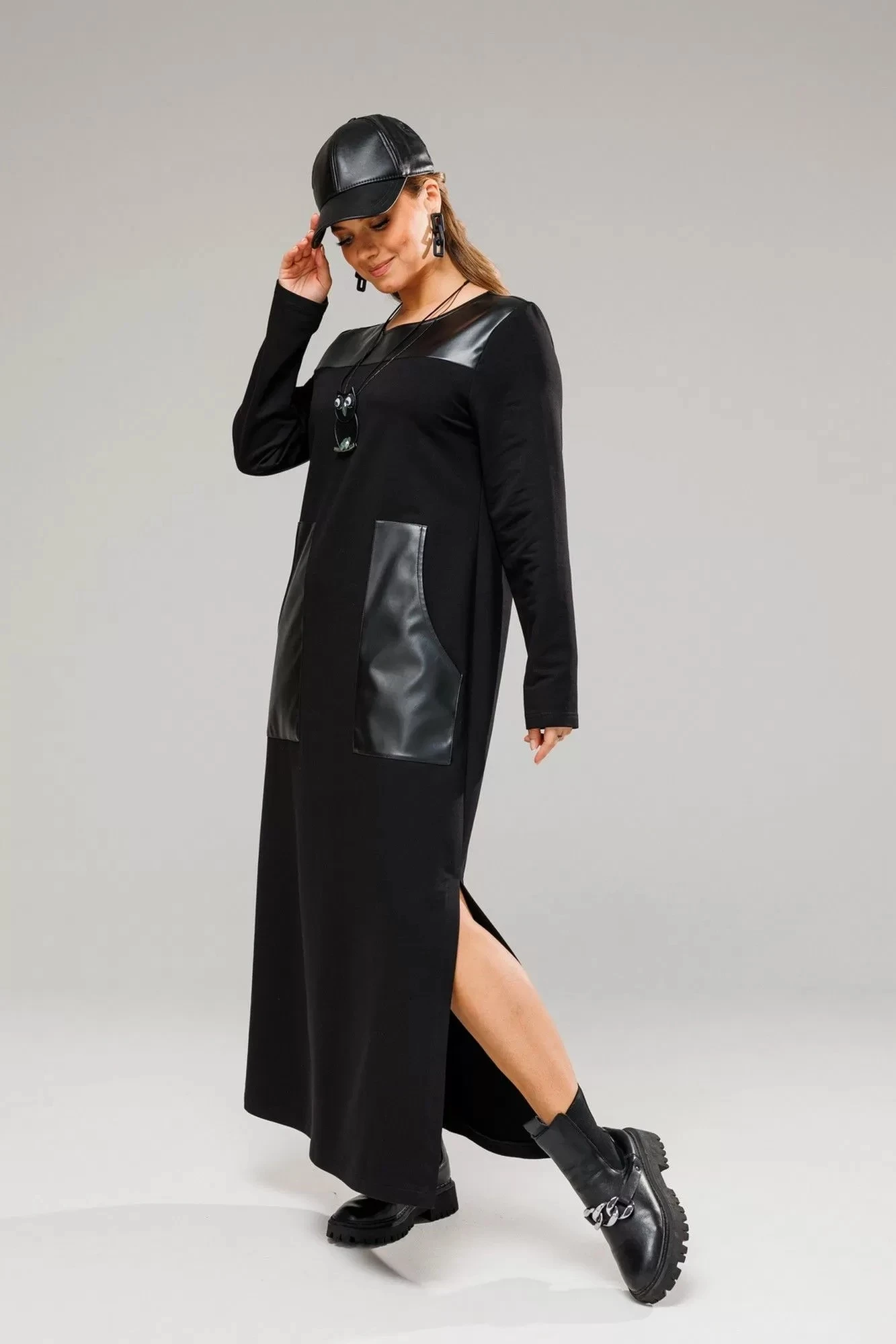 В боковых швах обработаны карманы и высокие элегантные разрезы.