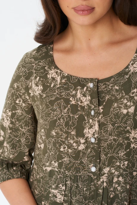 Платье YOUR SIZE 2254 Цветочный принт на темно-оливковом