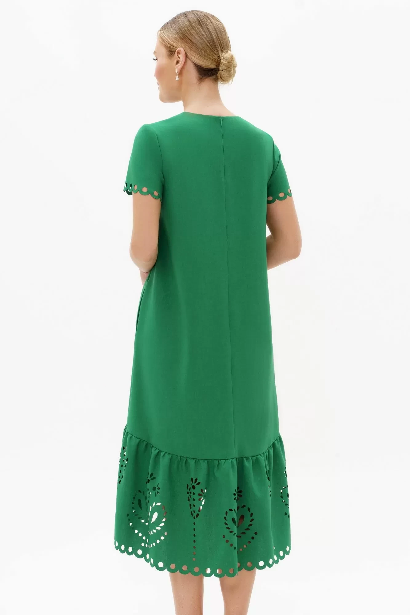 Длина платья по спинке – 123,5 см (±3,0 см) Ширина на уровне глубины проймы – 53,0 см (±1,0 см), Ширина на уровне линии талии – 57,0 см (±1,0 см), Длина рукава – 21,0 см (±1,0 см), Ширина рукава – 18,0 см (±1,0 см , Длина плеча – 11,0 см (±0,5 см) .
