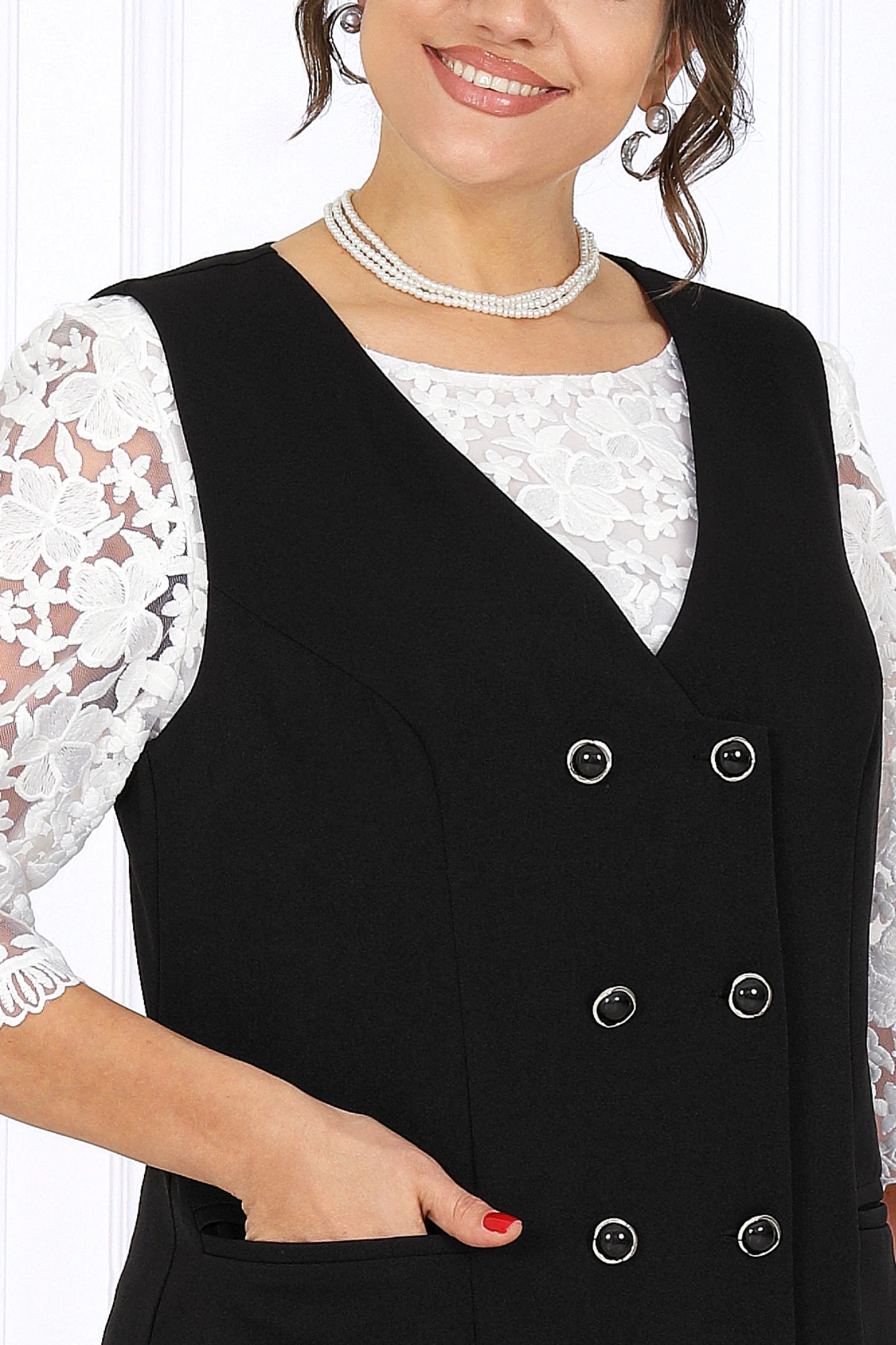 Этот сарафан, изготовленный из натуральной ткани, предлагает вам элегантность и комфорт в каждой детали. Его двубортный дизайн придает сарафану строгий и структурированный вид, что идеально подходит для офисного стиля. Однако, добавив праздничную блузку, вы трансформируете этот сарафан в стильное решение для торжественных событий.