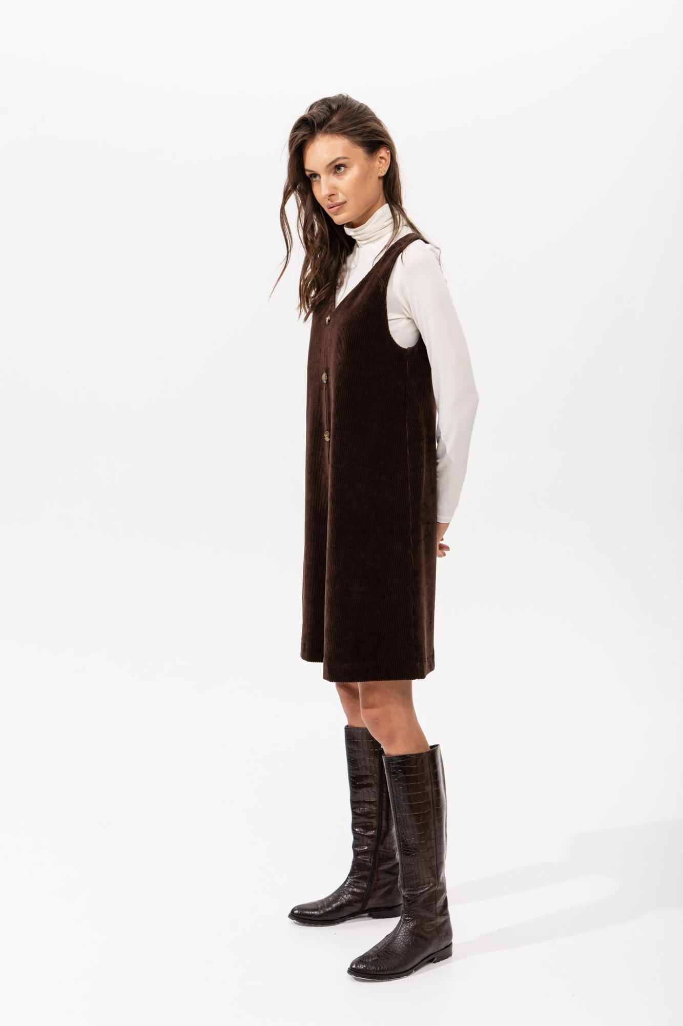 Стильный сарафан-комбинезон из вельвета с пуговицами
