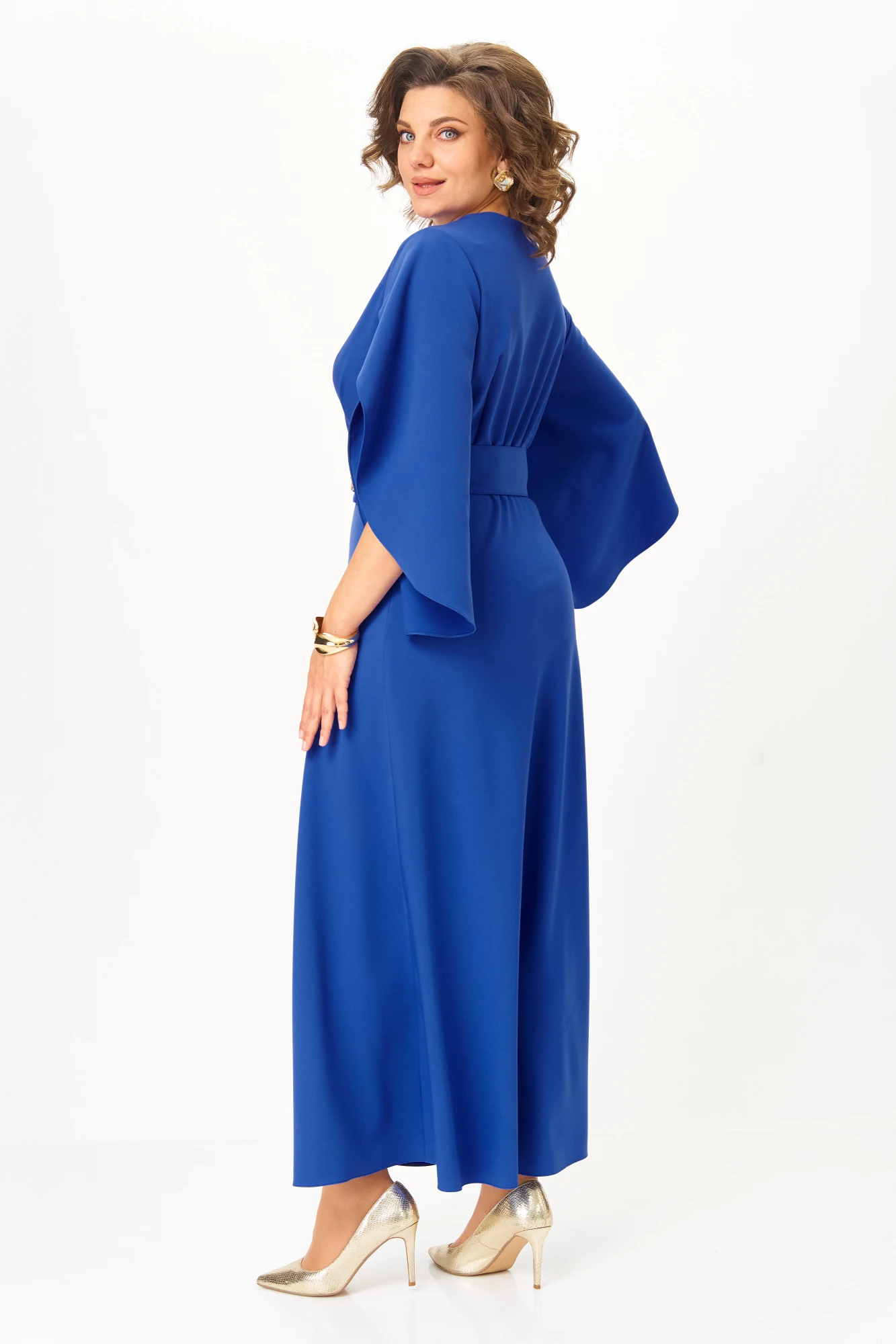 Платье длиной макси, с полуприлегающим лифом и юбкой А-образной формы, выполнено из однотонной ткани костюмно-плательной группы .