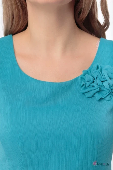 Перед с параллельными талиевыми вытачками, спинка с талиевыми вытачками, на юбке обработаны складки, вырез горловины округлый, в левом боковом шве обработана потайная застёжка молния.