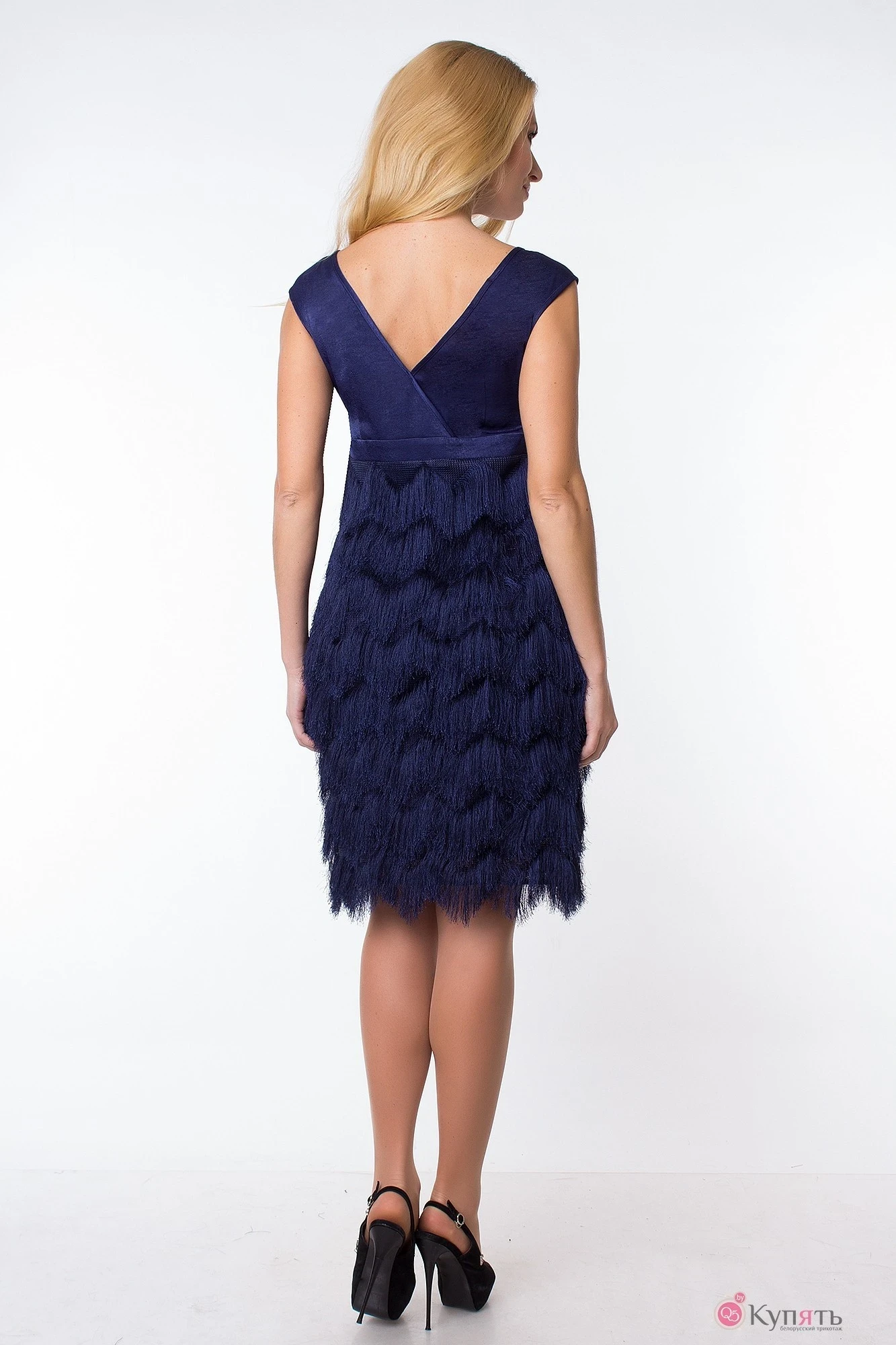 Нарядное женское платье полуприлегающего силуэта. Отрезное ниже линии груди. Лиф из ткани с эффектом *мокрого шелка*. Горловина круглая по спинке запах. Низ платья из ткани *травка*.