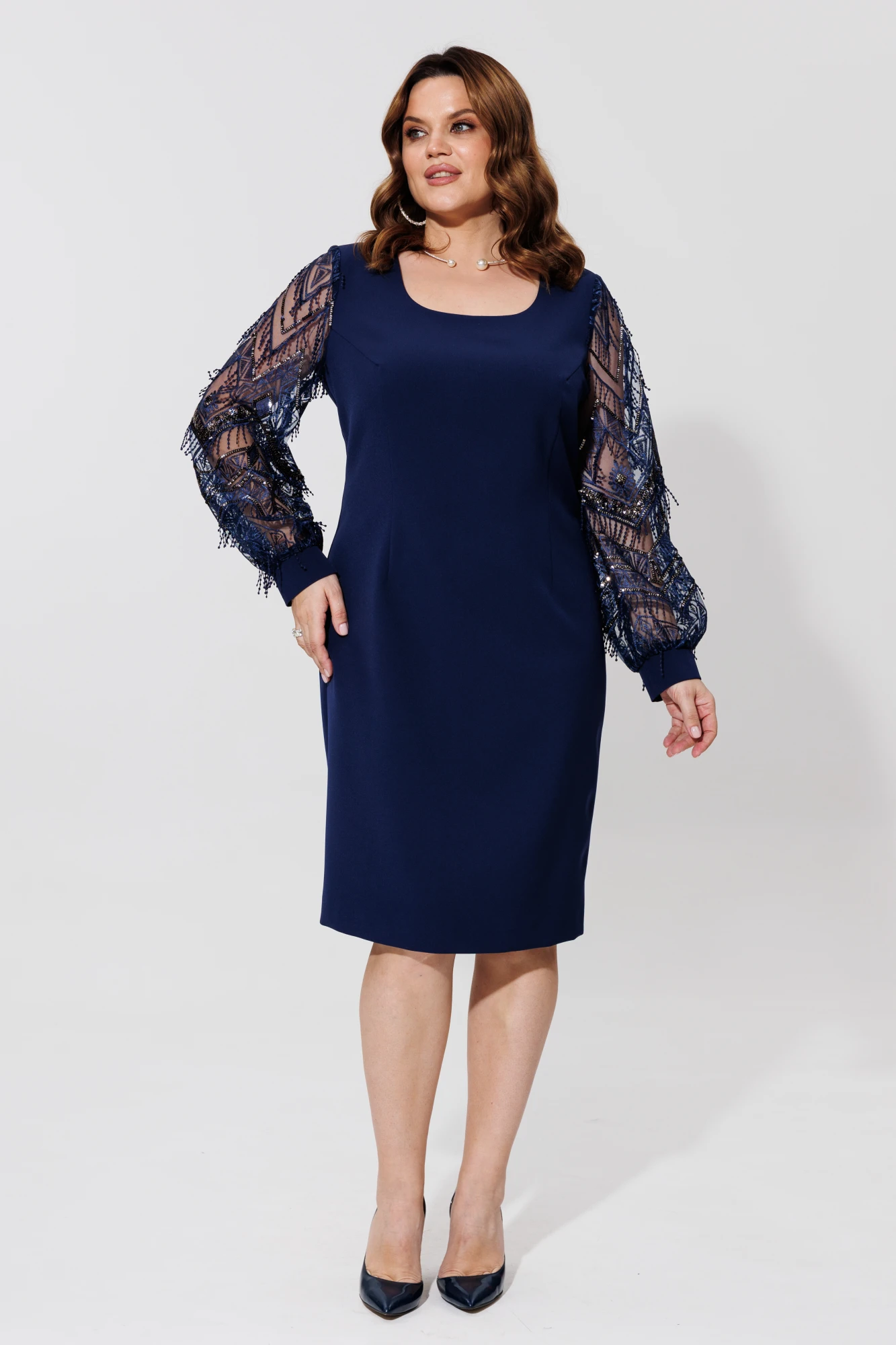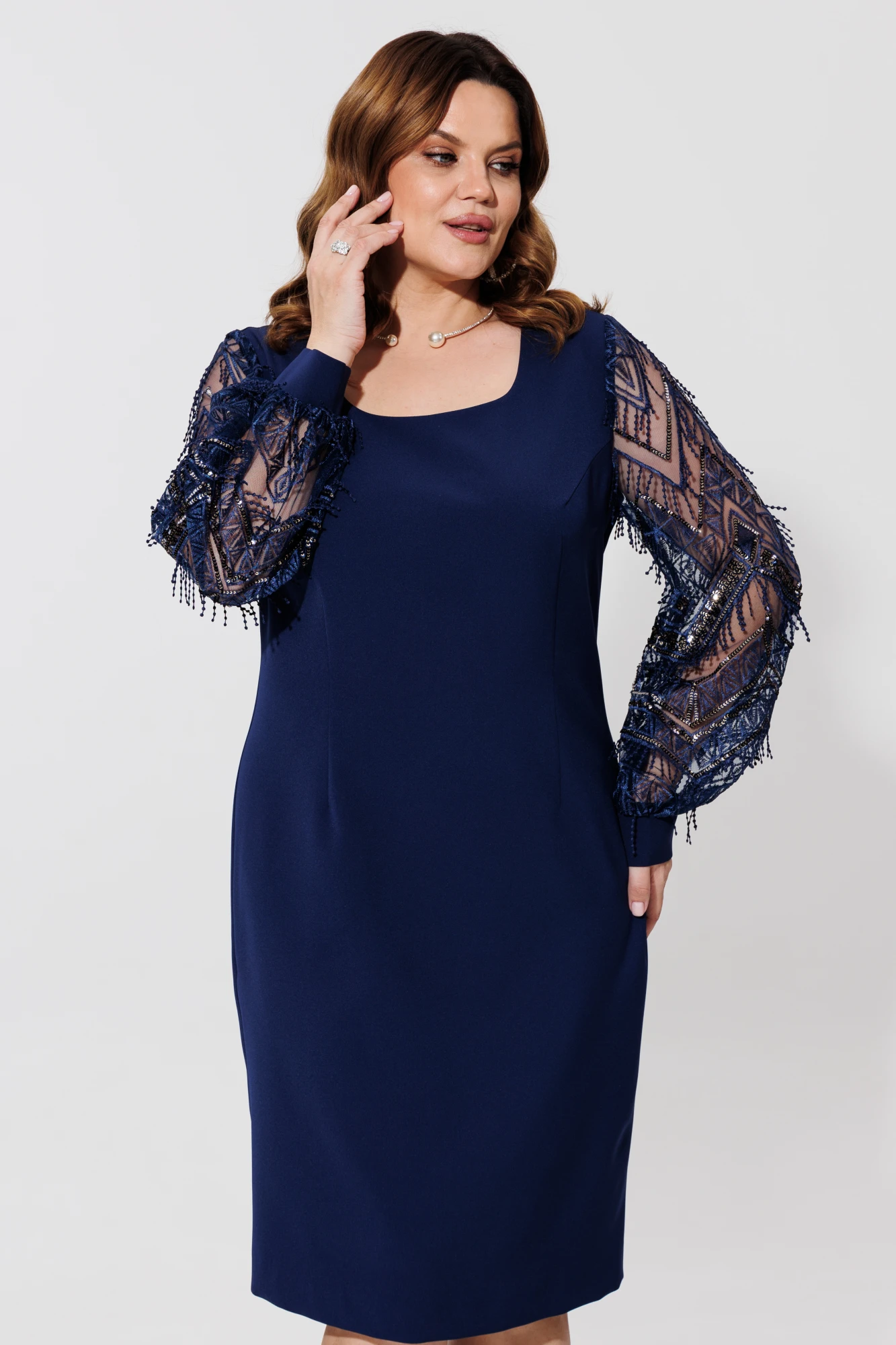 Платье миди кокетливо прикрывает колени. Округлый вырез горловины зрительно придает образу хрупкость. Платье женское , романтично лаконичного кроя соответствует торжественному стилю . Минималистичный дизайн делает платье больших размеров для женщин элегантным .Изящные полупрозрачные кружевные рукава на манжетах. Платье вечернее женское изготовлено из мягкого, приятного на ощупь, текстиля. Вы можете заказать женское платье на любое торжественное мероприятие.
