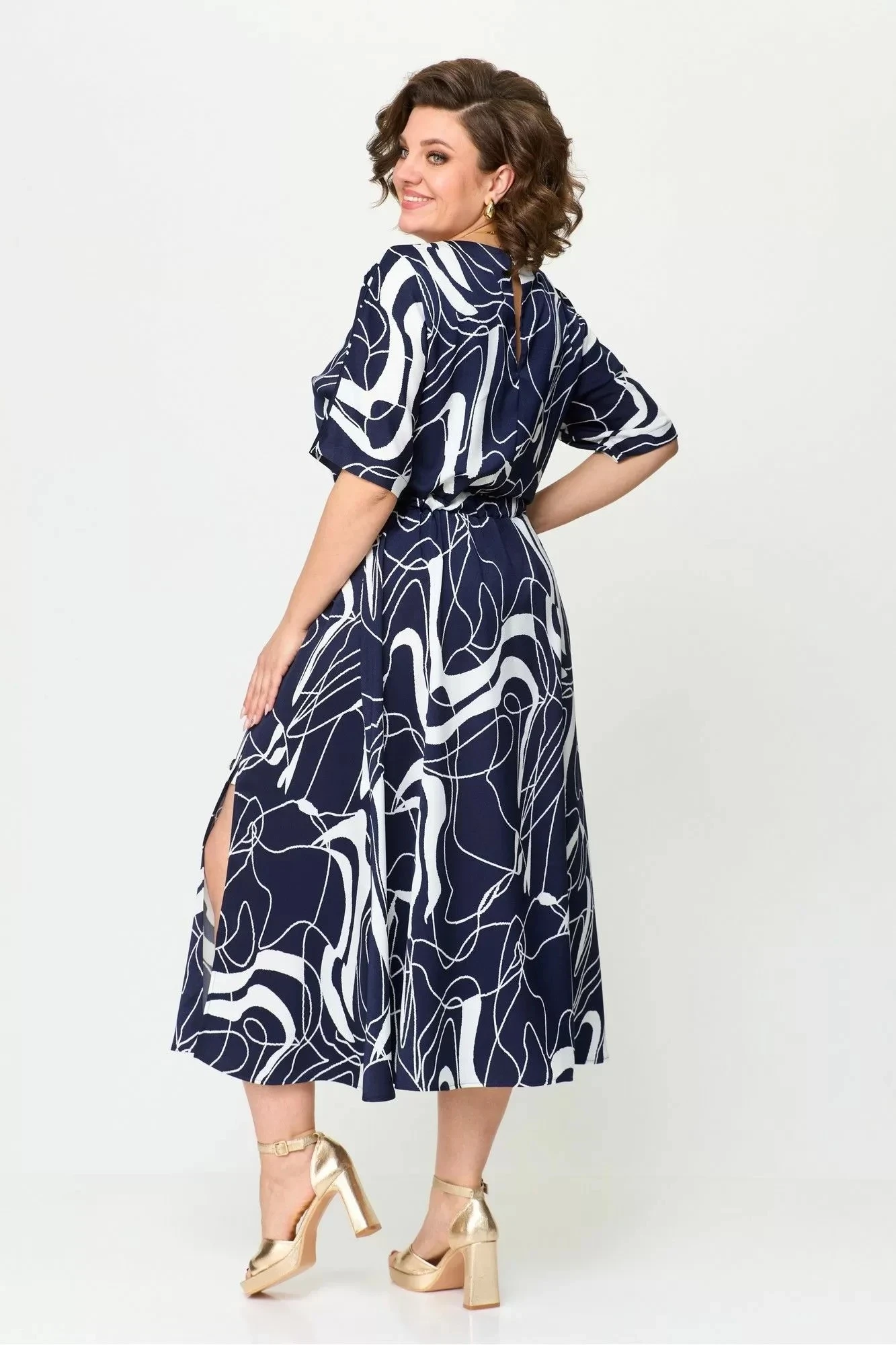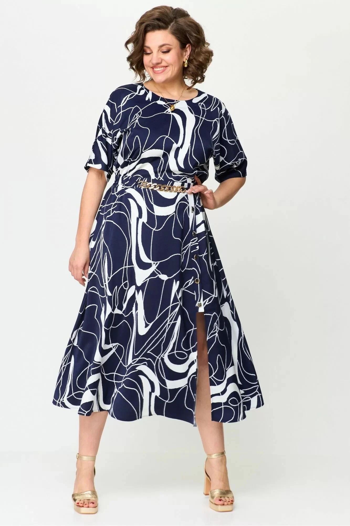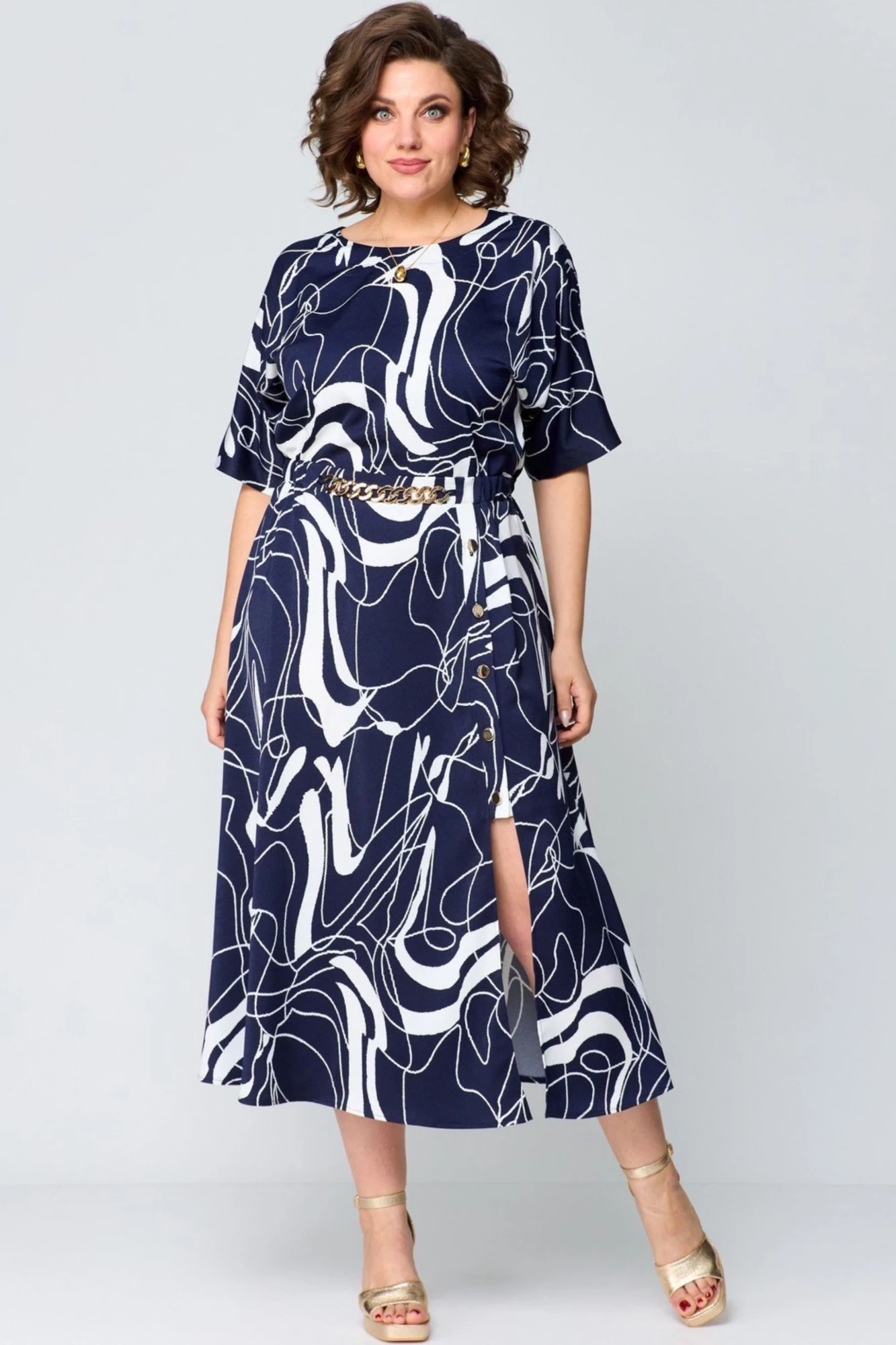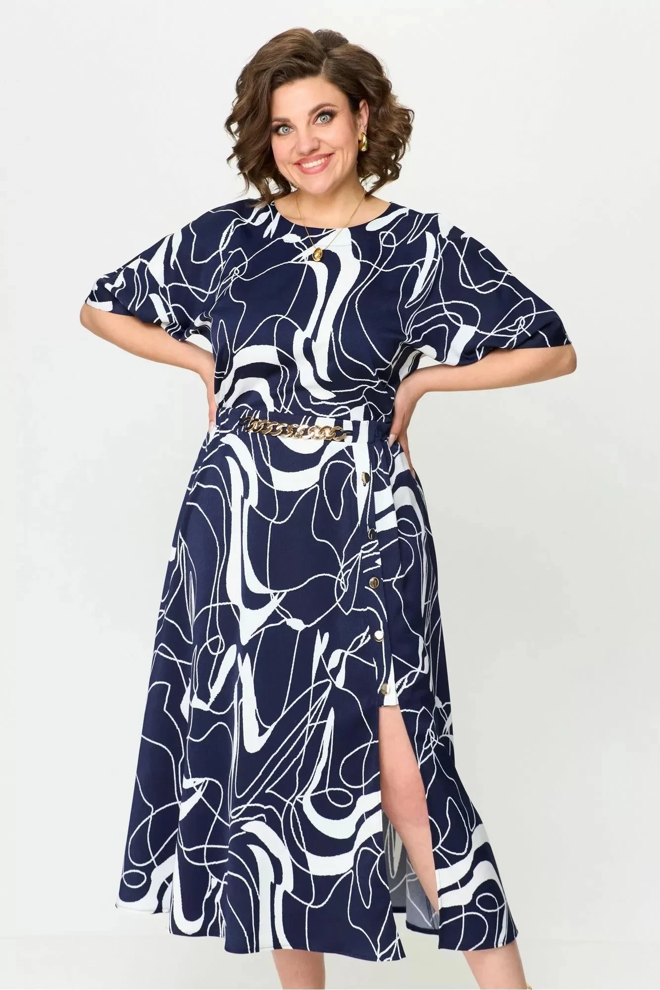 Идеальное платье для торжественных мероприятий и романтических прогулок. Платье в длине миди из качественной плательной ткани с вискозой в составе. Горловина округлая с внутренней обтачкой и отделочной строчкой, по спинке глубокий разрез и застежка на навесную петлю и пуговицу. Крой рукава «кимано» делает платье очень привлекательным, рукав свободный, длиной 3/4. Платье отрезное по линии талии, частично на эластичной резинке шириной 3 см, по переду выполнен притачной пояс с декоративным элементом в виде цепочки, которую при необходимости можно снять. Декоративные элементы изящно подчеркивают линию талии, позволяя одновременно чувствовать себя комфортно и удобно. Нижняя часть платья в виде расклешенной юбки, легкой и струящейся. По переду юбки с левой стороны расположены притачные планки с отделочными строчками и застежкой на петли пуговицы. Длина застежки до колена, к низу платье с эффектным глубоким разрезом. Элегантное и летящее, оно обеспечит восторженные взгляды.