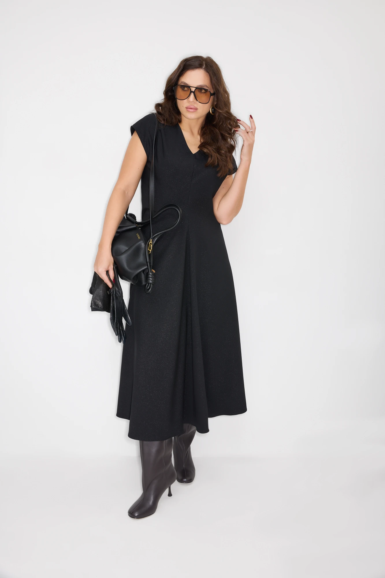 Платье женское, прилегающего силуэта. По переду и спинке средние швы. Вырез горловины по переду V-образный. Линия плеча спущенная. Платье выполнено "по косой", что позволяет достичь хорошей посадки изделия на фигуре, без дополнительных швов и вытачек. В комплете украшение.